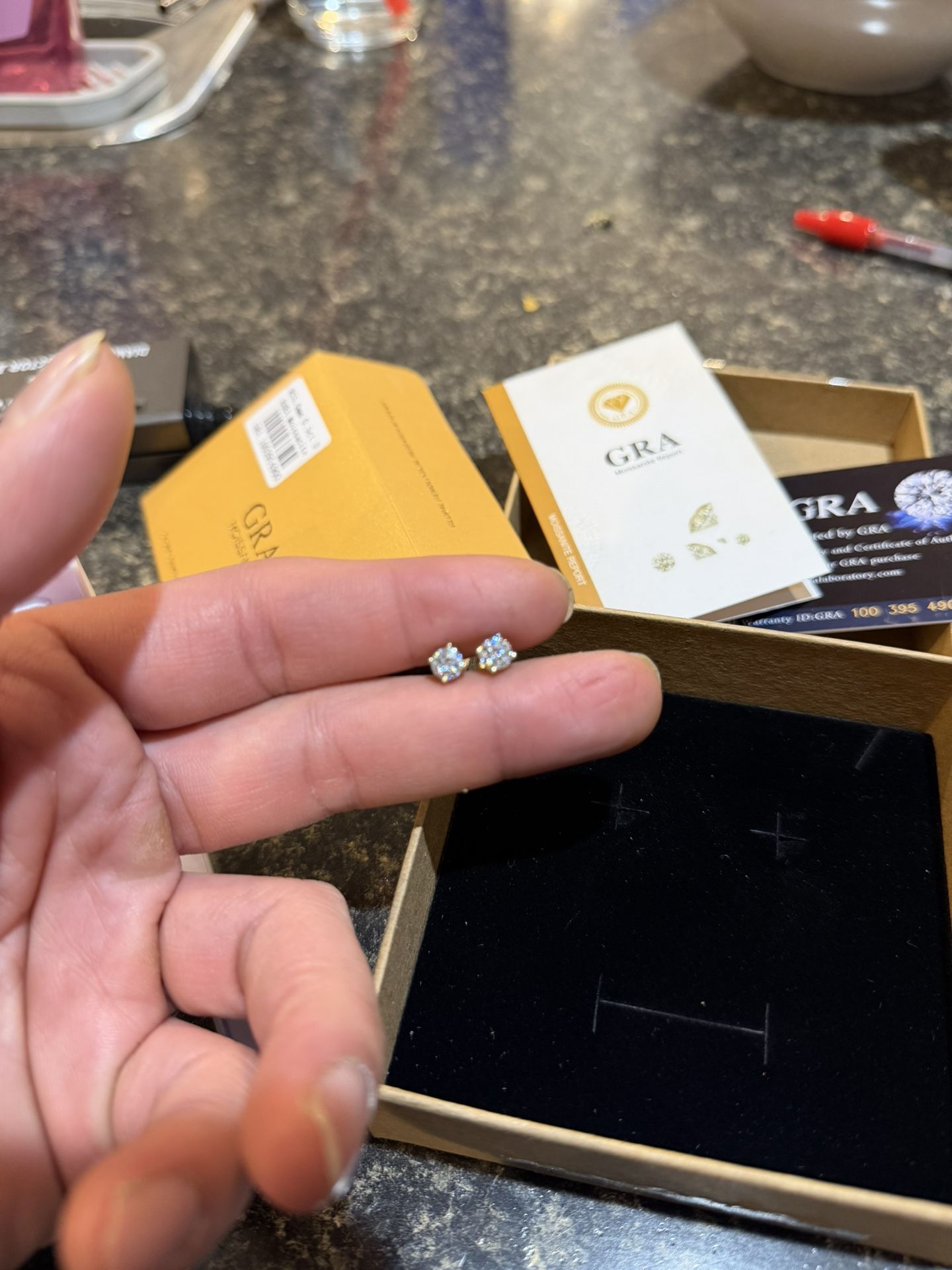 925 Sterling silver with moissanite earrings Comes with GRA moissanite certificate. Will diamond test during meet