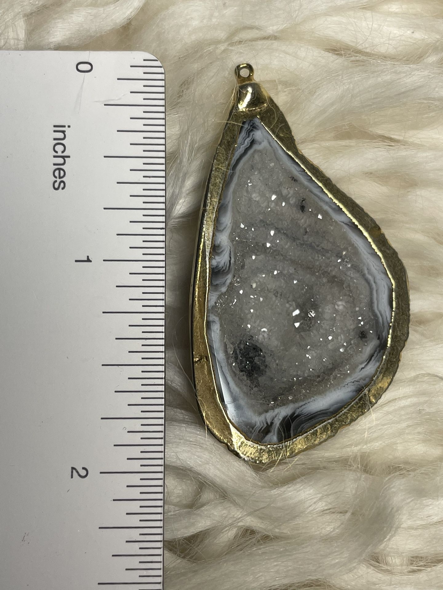 Druzy Mexican Agate Pendent With 24k Gold Edge Accent Over Brass