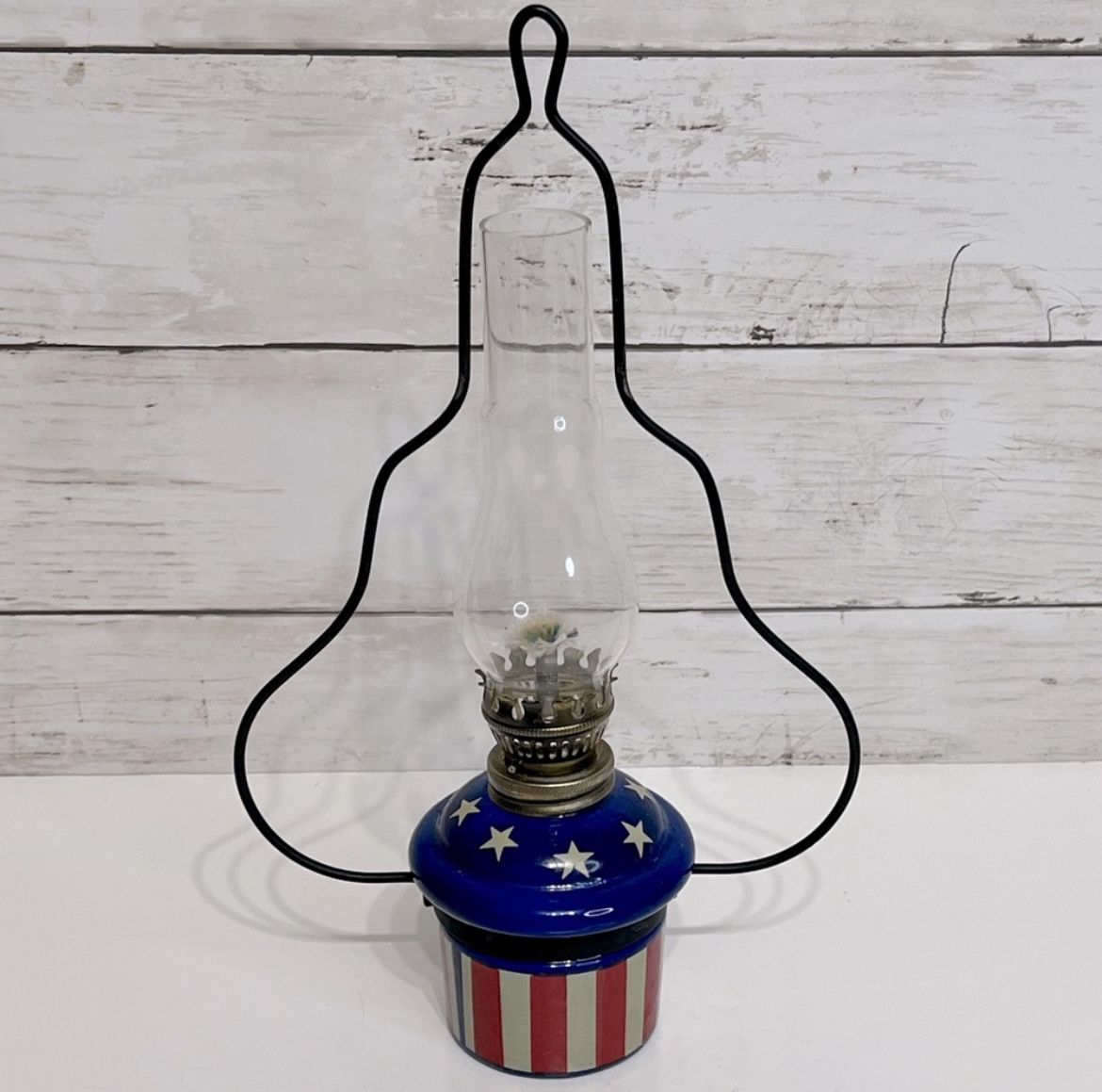 Americana Patriotic Theme, Japanese Made, Sailing Antique Oil Lamp 11”. Still Works Very Well Just Needs Oil PRICE IS FIRM