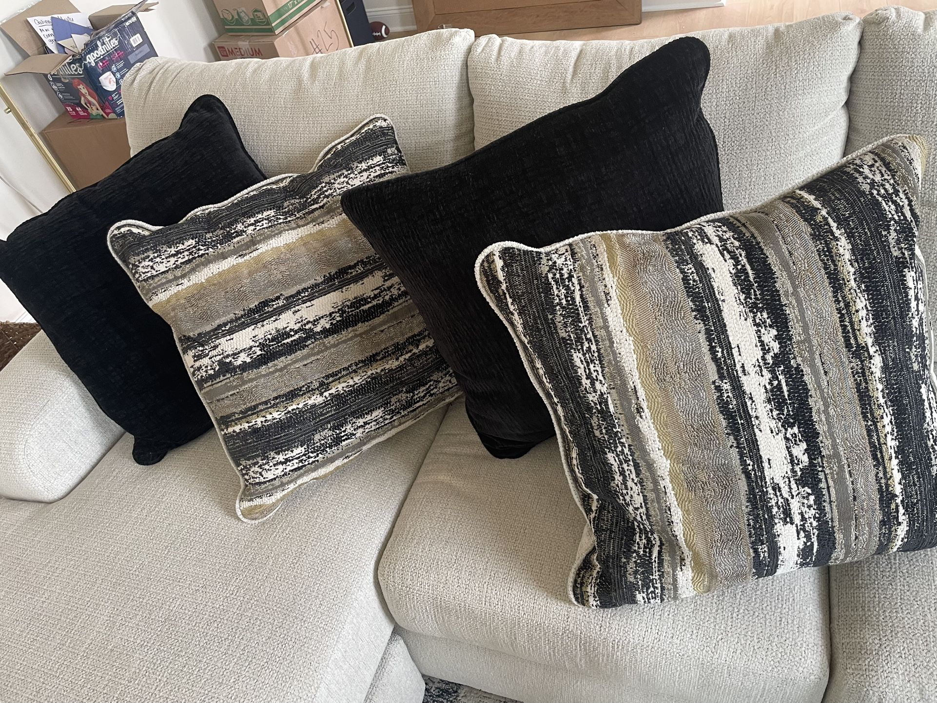 4 brand new, never used large couch pillows. Great for couch or beds.