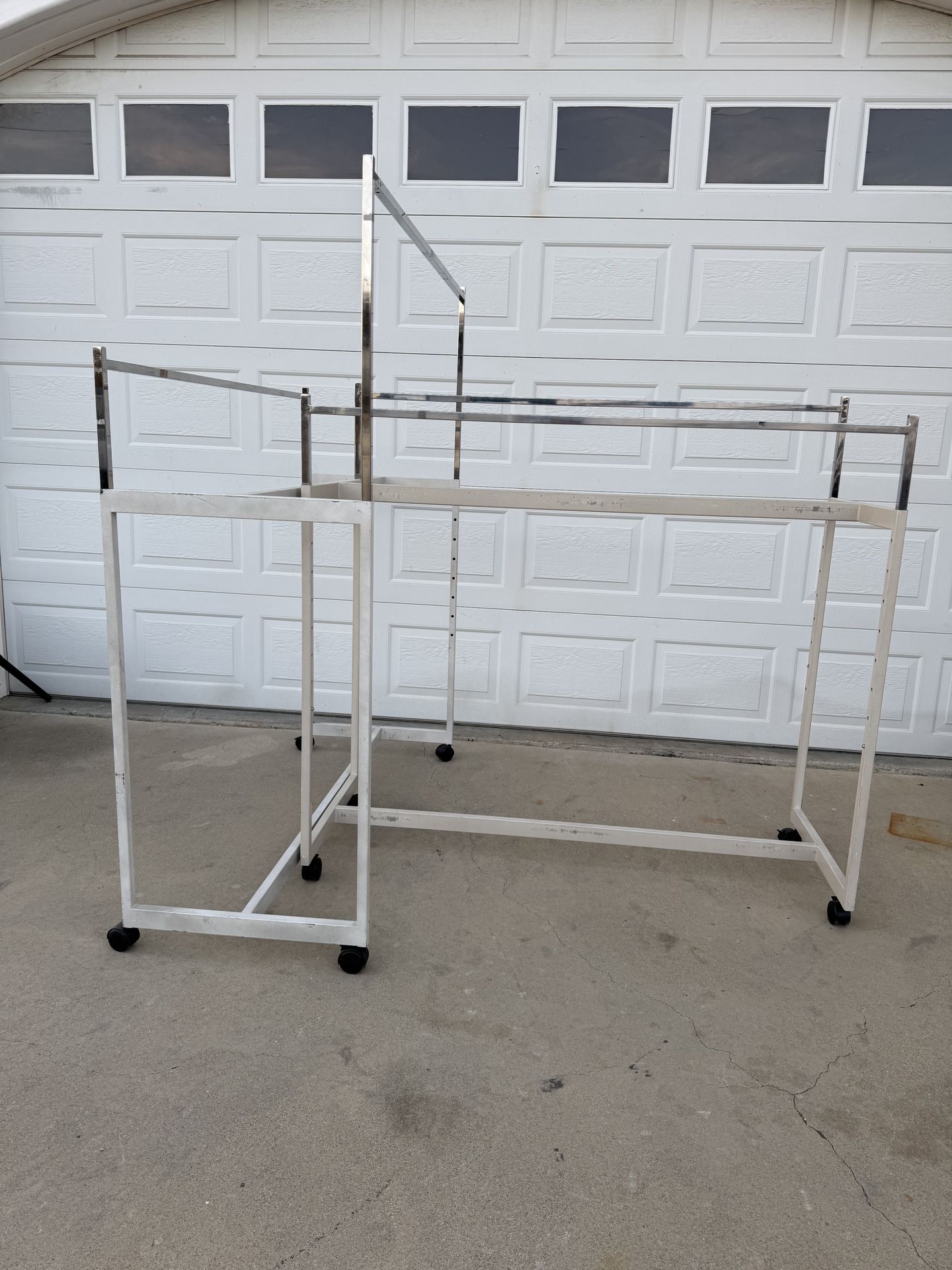 Will hold over 150 lbs. of heavy clothing. Made in the USA, original cost was $395 each. Sell for $69! Have 50 to sell. Dimensions are 5ft long, 2ft wide and adjustable height of 50 to 72 in. In Chino Hills by appointment . Can deliver for a fee. If the ad is up they are available so ask something else. Price is firm unless you buy at least 5. All are like new.