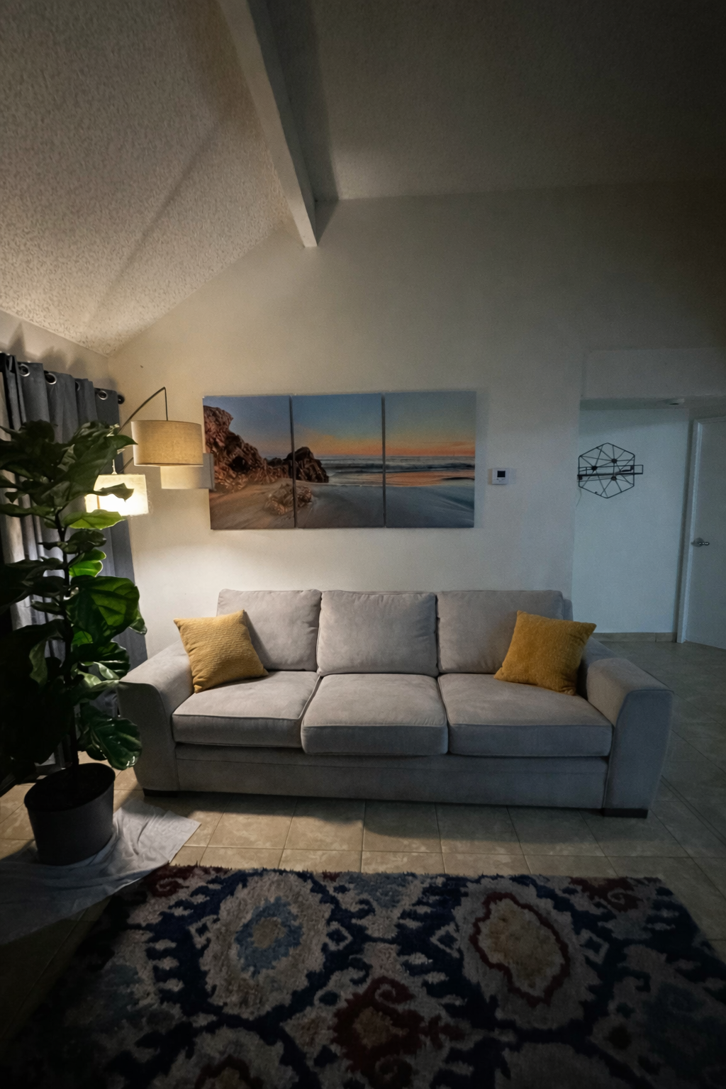 Free couch, 111 inches long with deep, comfortable seats. Very spacious and great for lounging. Cushions are in good shape. Could use a light cleaning along the bottom/front base area, but overall still very usable. Pillows not included. Carpet can go for free 5x7 Available for pickup within two weeks from posting date. Weekend pickup only. Pickup times must be prearranged. Must bring a truck and help to load. First come, first served. No holds.