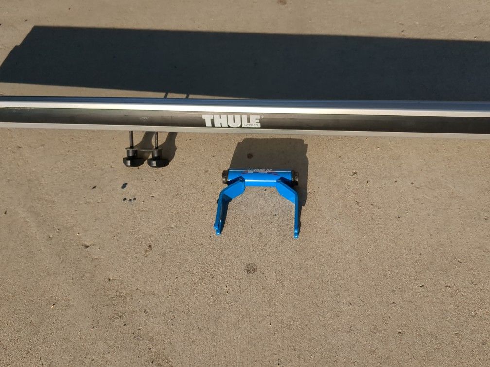 Thule quick release bike rack would fit round or square cross bars but not the wider aero bars. This is an older design but fits my Trek road bike as is. It fits my 29er Trek mountain bike with the adapter. Adapter is $60 new. Hurricane Trilogy Fork Up Roof Rack Adapter: 15mm X 110mm “Trilogy” The newest adapter in the lineup of bullet proof fork adapters. Designed to work with the Boost 15mm x 110mm as well as other 15mm x 110mm thru axle spacing. Another great product with a patented design.