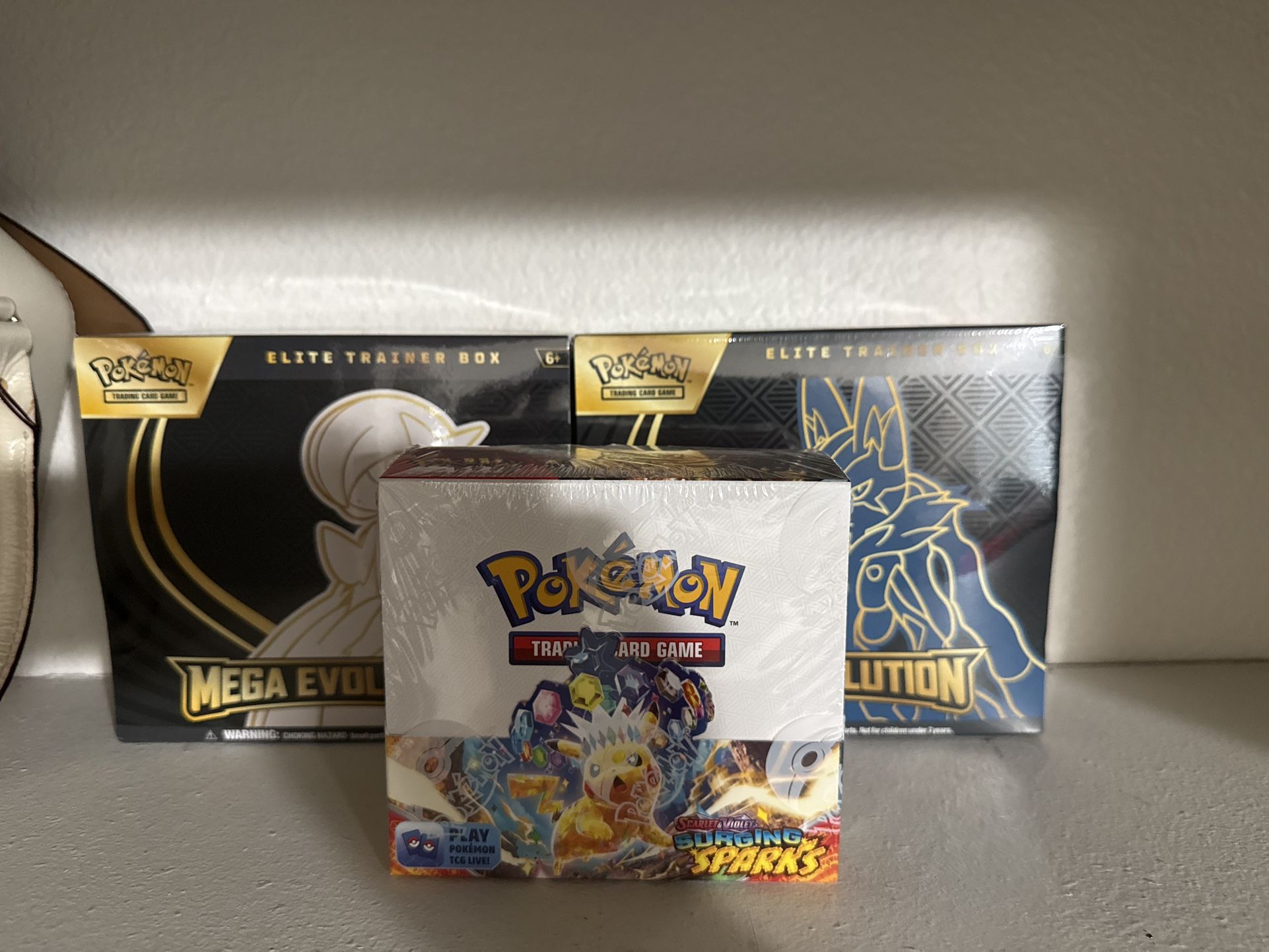 2 Mega Evolution ETB 1 Lucario and 1 Gardevior 1 surging sparks booster box Market price is $433 selling as a lot
