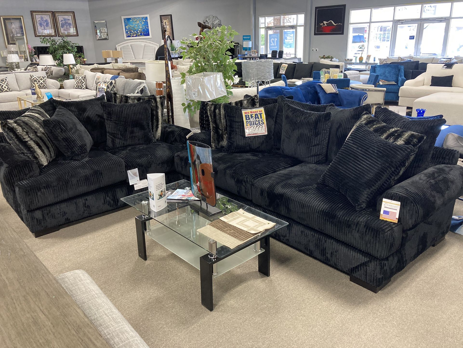 2 Piece Black Sofa And Loveseat Easy Purchase Available