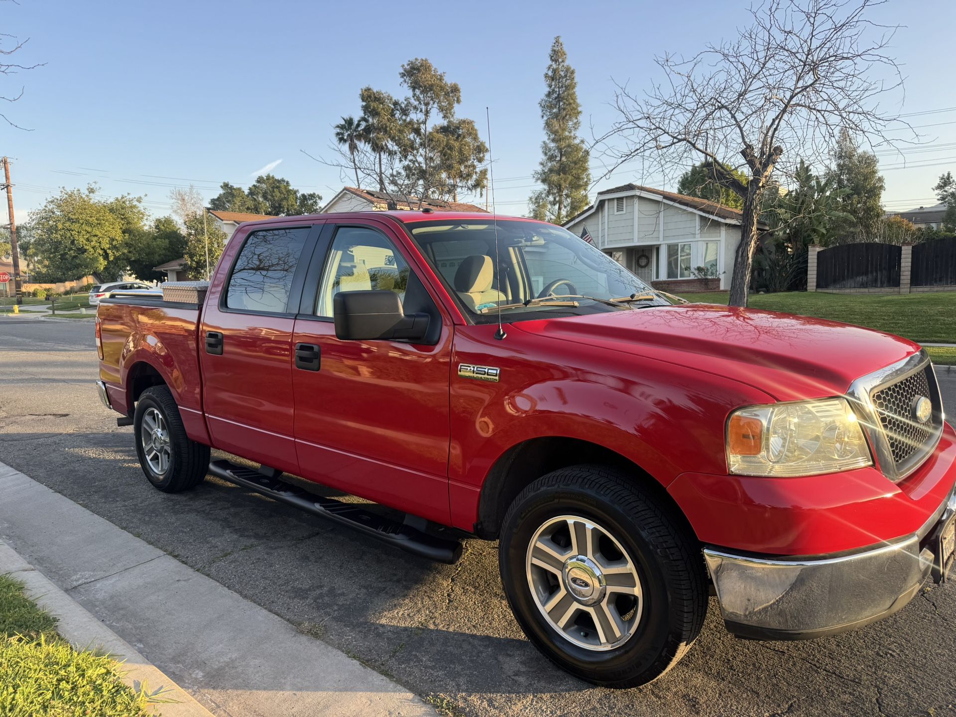2008 Ford F150 XLT crew cab four-door fully loaded V8 TRITON 5.4 L runs excellent lots of power good on guys 18 to 22 miles a gallon automatic transmission tow hall tow package 132,200 miles rebuilt motor at 90,000 miles from Ford brand newer Michelin tires 17 inch wheels a appearance package, Ford sidesteps Ford chrome bed rails bed liner toolbox, one owner, not smoking garage keep Truck is an excellent condition inside and out six disc CD changer sounds great tilt will cruise control controls in steering wheel power windows, power door locks, power mirrors keyless entry alarm fully loaded truck has been an excellent truck clean title. Current registration just passed Smog asking 7200 our best offer.