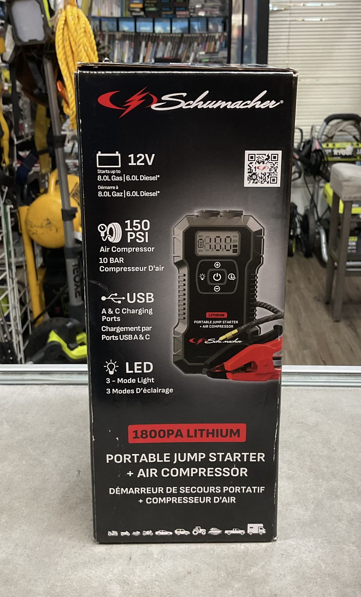 Schumacher 1800A Jump Starter, Power Pack, & Air Compressor