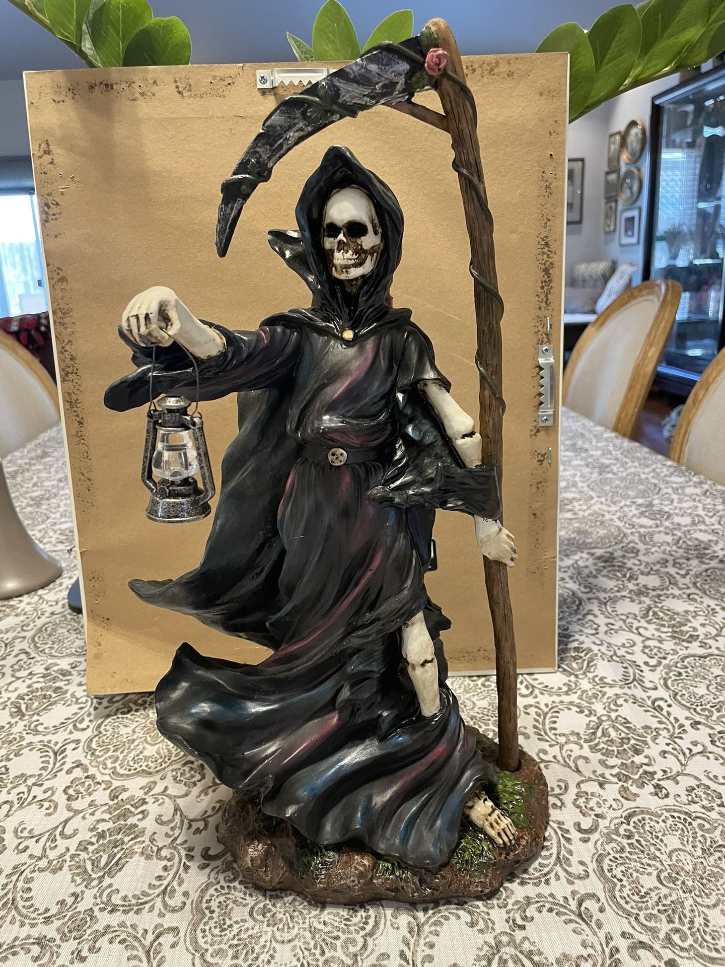 16” gothic grim reaper skeleton with lantern and 16” scythe pre owned great condition