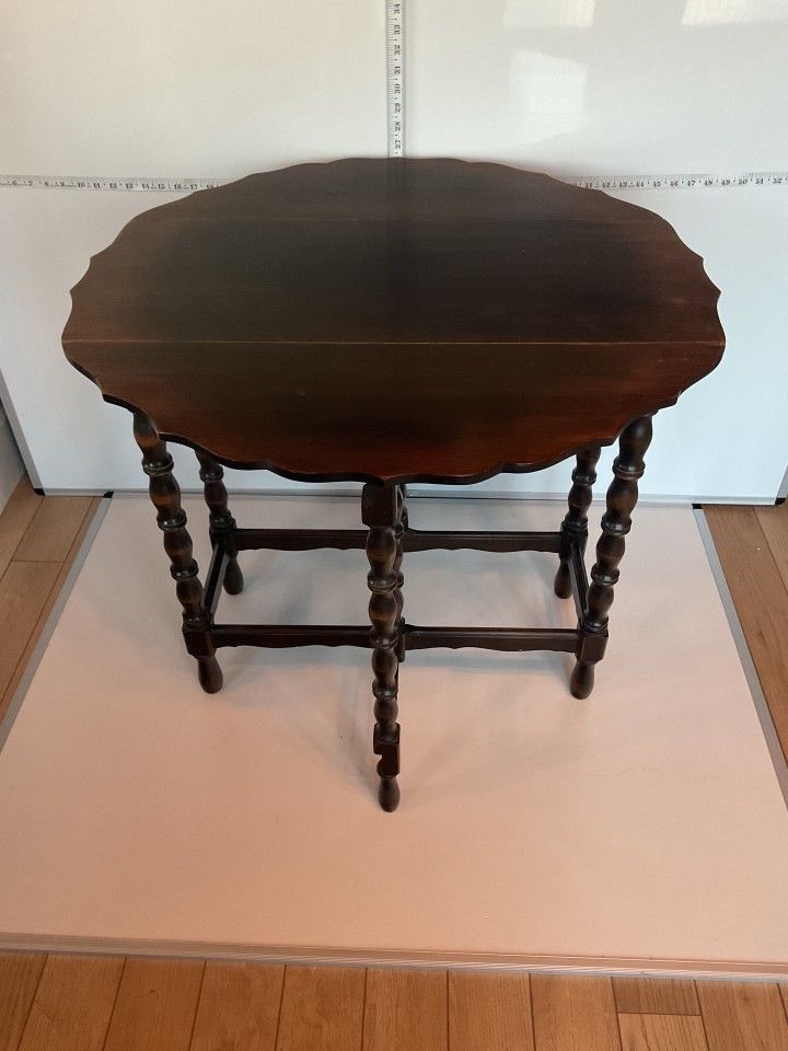 Hidden Treasures on the Brick Road 10003 270th St NW, Stanwood, WA 98292 Open: Fridays 1pm - 4pm & Saturdays 1pm - 6pm Length (inches): 34.00 Width (inches): 34.00 Height (inches): 26.50 Add a statement of early 20th-century craftsmanship to your home with this stunning drop-leaf gateleg table by Imperial Furniture Co. of Grand Rapids, Michigan. This vintage piece showcases a rich dark wood finish, scalloped top, and classic barley twist legs—perfect for traditional, farmhouse, or cottage-inspired interiors. Features: Imperial Furniture Company Heritage: Stamped with the original green shield label from the renowned Grand Rapids maker, a city known for its fine furniture legacy. Age: Circa 1940s–1950s Drop-Leaf Versatility: The functional gateleg design features two hinged leaves that fold up or down, allowing for space-saving adaptability. Style: Colonial Revival / Traditional American Scalloped Oval Top: Uniquely shaped top with elegant curves gives the table added visual interest. Theme: Classic American with formal accent versatility Barley Twist Legs: Six lathe-turned legs with connecting stretchers offer both style and structural support, emphasizing its Jacobean revival influence. Rich, Dark Finish: Deep, warm brown tone highlights the grain and craftsmanship. Condition: Very good vintage condition with light surface wear consistent with age. Solid, stable construction and functioning leaf mechanisms.