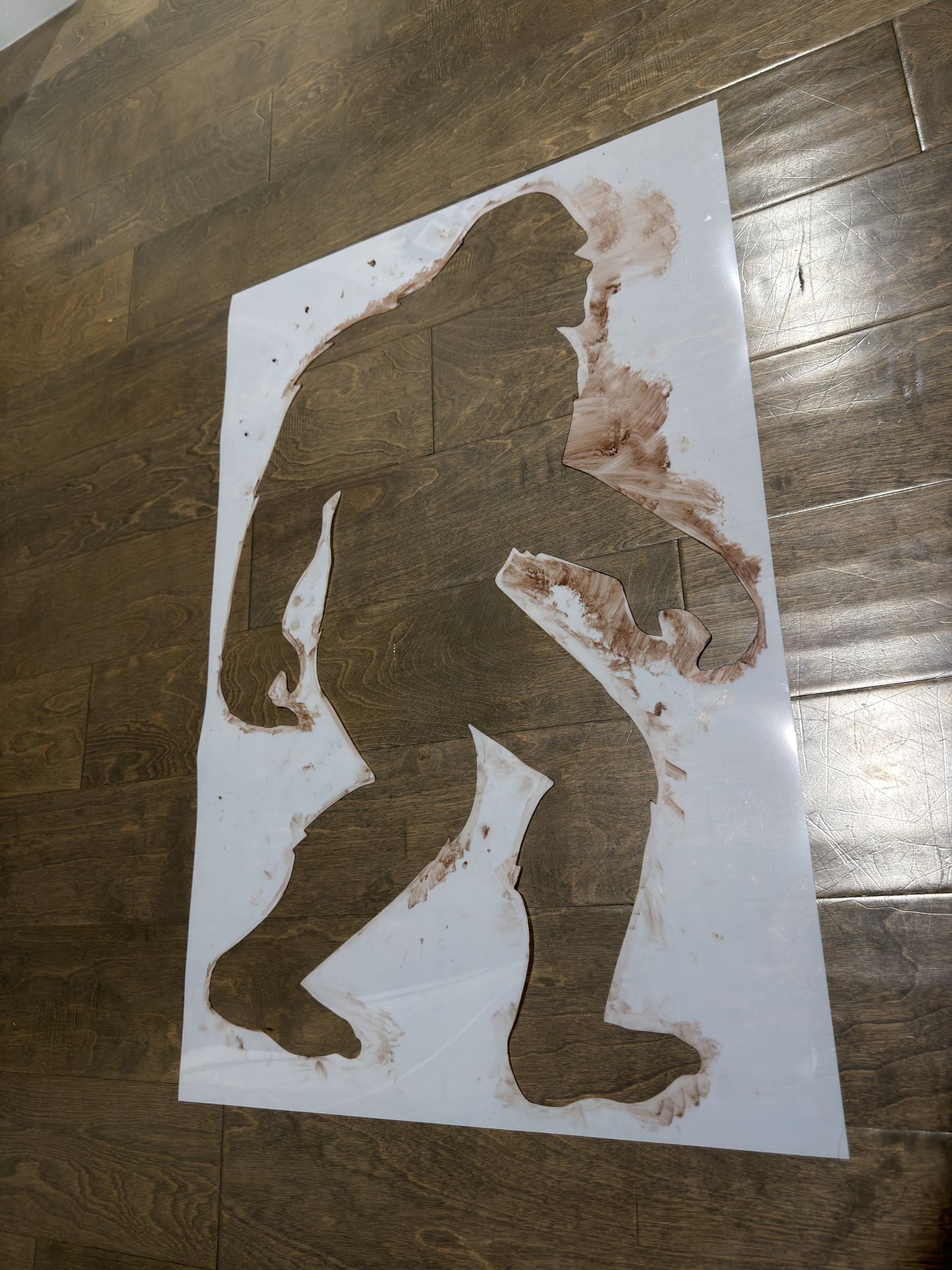 A reusable, durable vinyl template of big foot We used it once to make the cornhole board you see in the pic (for example purposes only, board is NOT for sale) The board is 2’x4’ for reference Perfect for art work, and fun projects Pick up in Puyallup Thanks