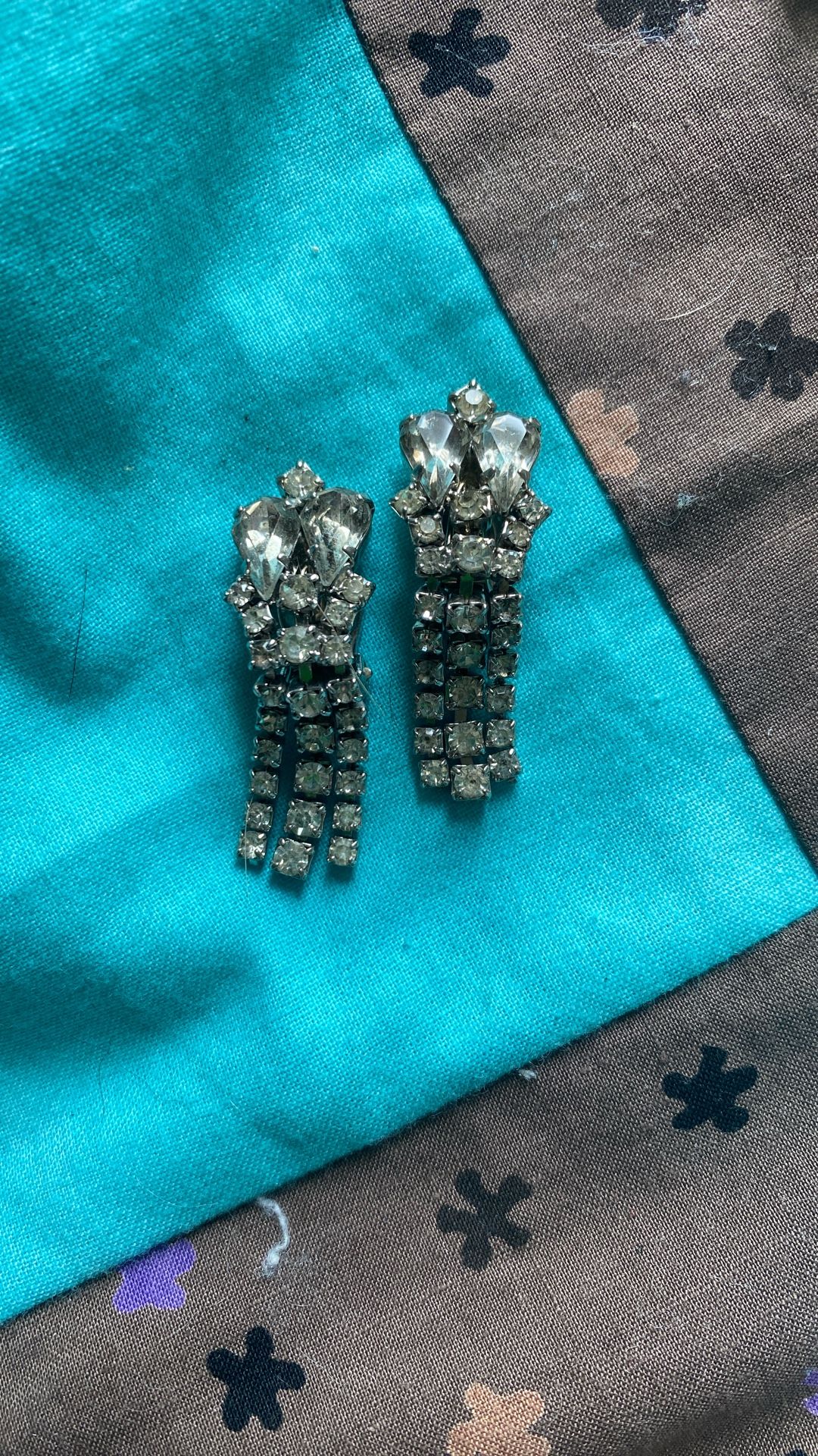 Clear rhinestones in silver tone vintage clip on earrings. Excellent condition. Serious inquiries only please. Pick up only off S. 56th and Yakima.