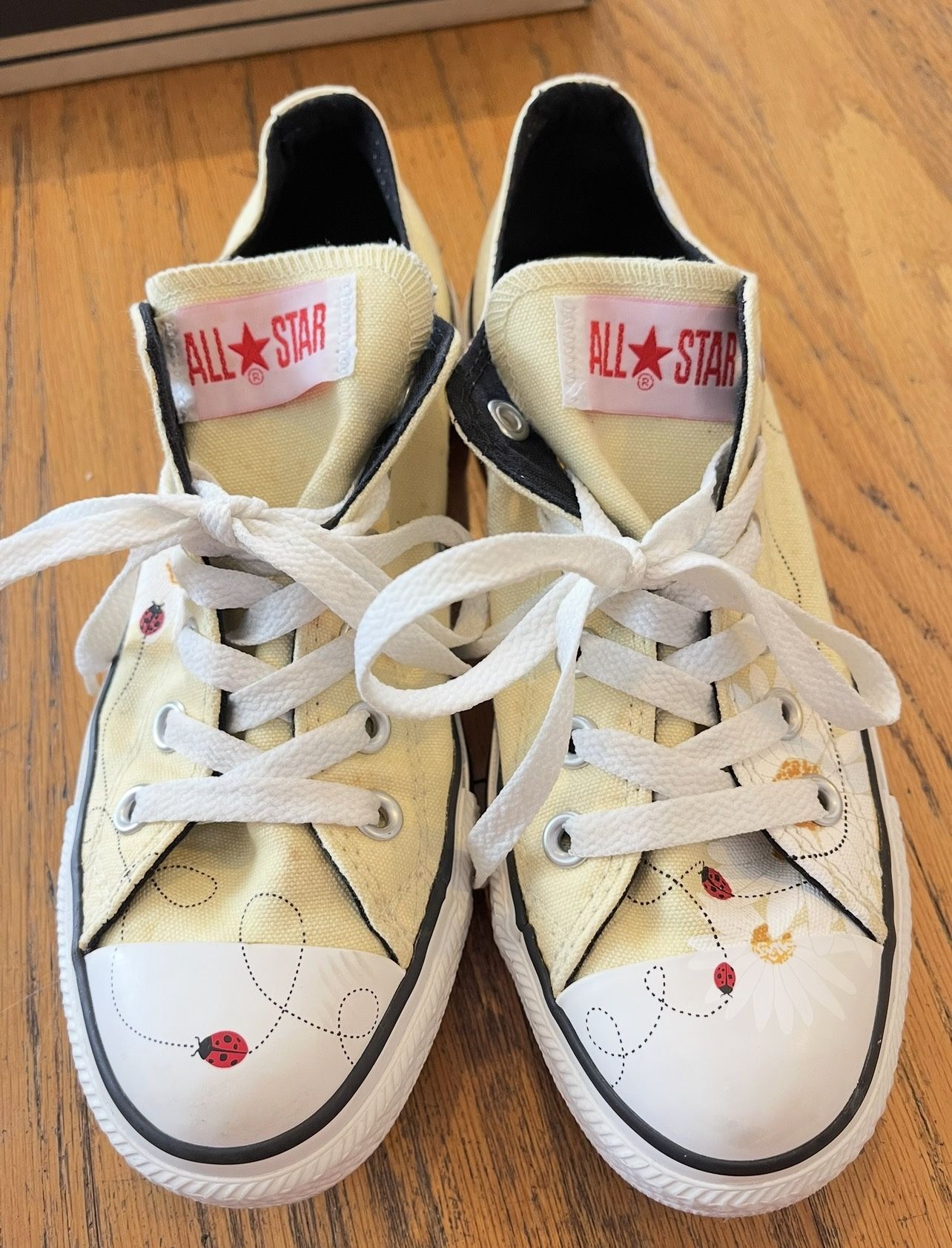 Converse Spring Daisies w/ Lady Bug trail pastel yellow chucks 7 low top Shoes