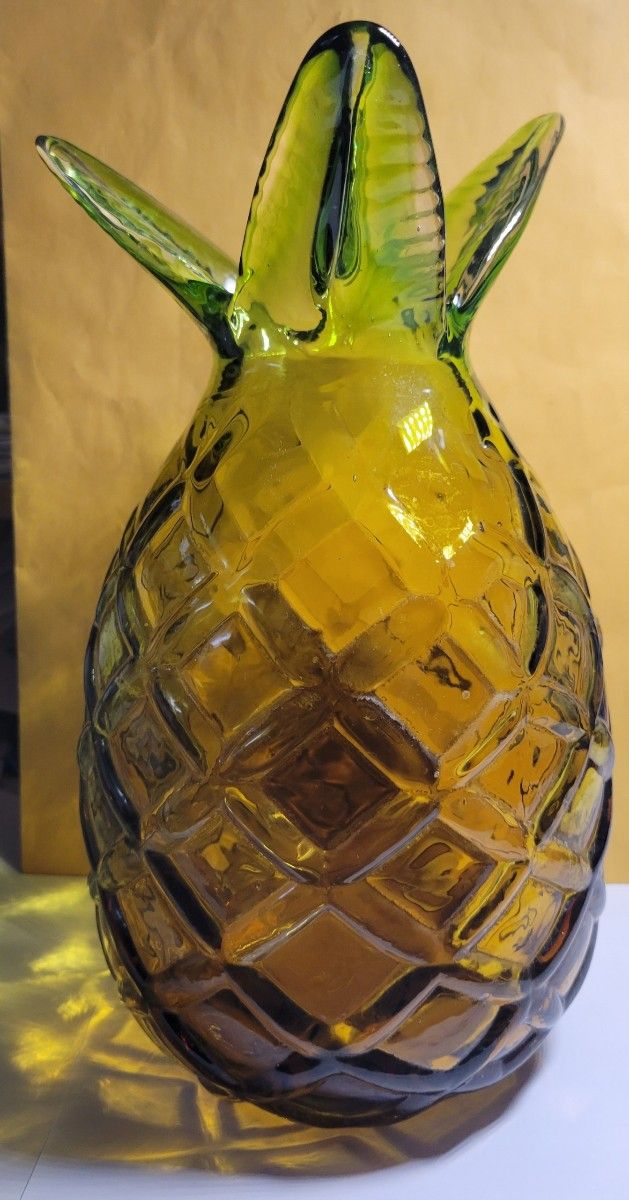 Gorgeous Murano Style Amber Green Glass Cut Pineapple π vase