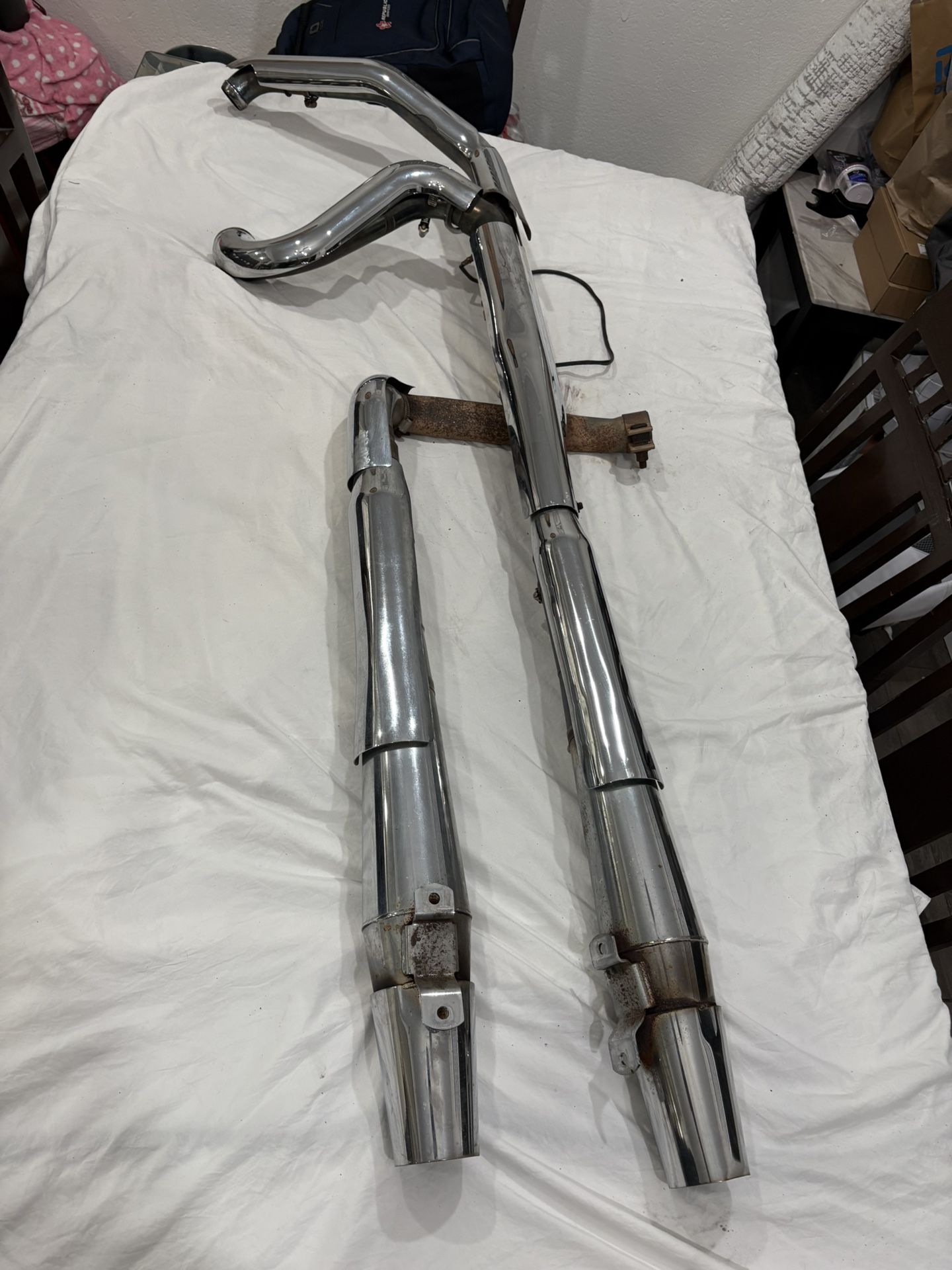 Harley Davidson has thunder headers off a 2013 twin cam street glide $500 in great shape