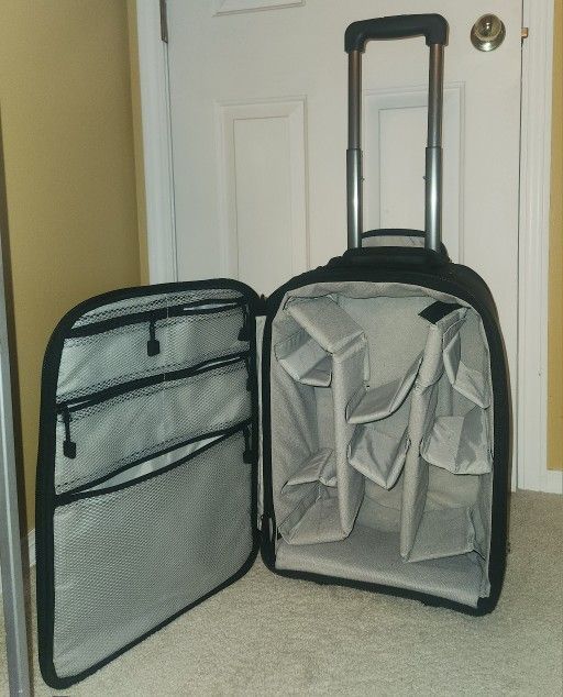 Selling my Tenba Rodie roller bag. Great to carry multiple items with at all times. Well taken care of. Size 19x14. From non smoking home. Camera gear not included. Serious buyers only. Don't ask if its available. If online, its available. Cash only. Tenba rollers are a line of professional camera and gear bags designed for secure, durable, and mobile transportation, often featuring a sleek, discreet design. Key features include a protective honeycomb internal frame, shock-absorbing wheels for smooth rolling, and capacity for multiple cameras, lenses, and laptops. Many models also include a removable padded camera insert, a quick-access pocket for a portable battery, and a tripod carrier.