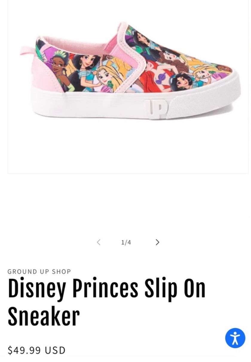 Brand new and never worn. Size 5. Comes with box, but no lid. Perfect for everyday wear or to pair with your favorite outfit at Disneyland. Embrace the magic of childhood with the Disney Princess Slip-On Sneaker by Ground Up! These easy-on sneakers feature canvas uppers with allover Disney Princess character graphics, elastic midfoot goring, and durable rubber outsoles for flexible traction.