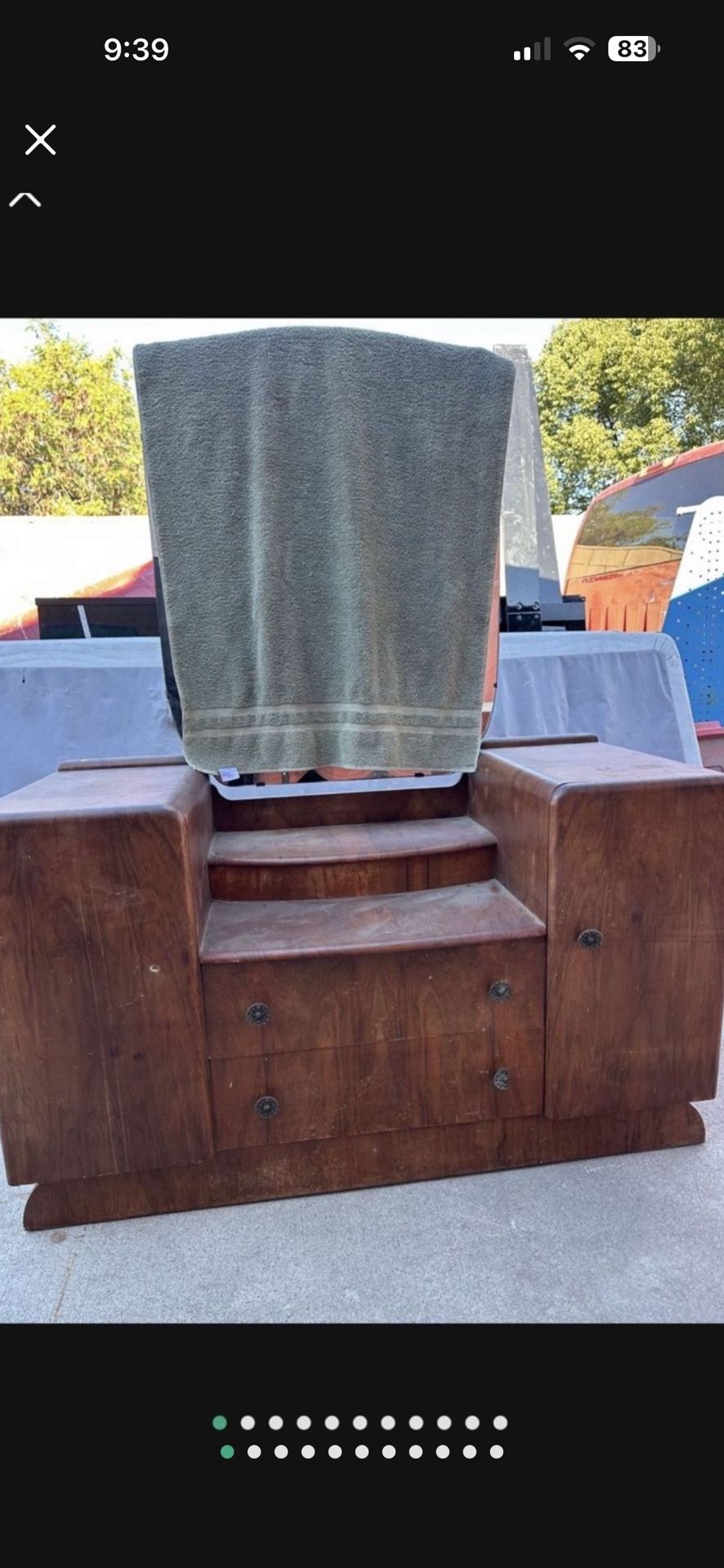 Vintage kids size small dresser with mirror All drawers open and close Needs a good dusting cleaning and maybe even painting to bring it back to life All drawers have knobs except for one Look at pictures, please Sold as is