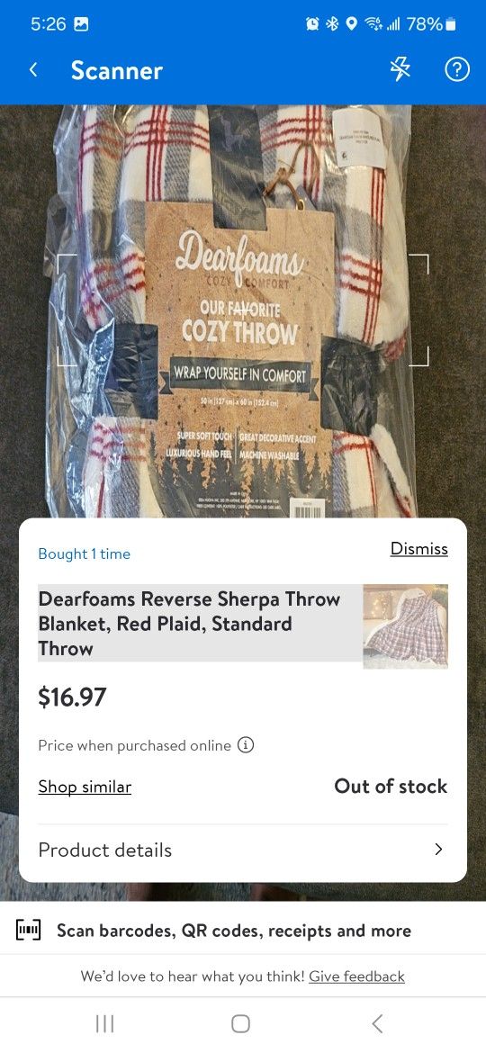 Dearfoams Reverse Sherpa Throw Blanket, Red Plaid, Standard Throw