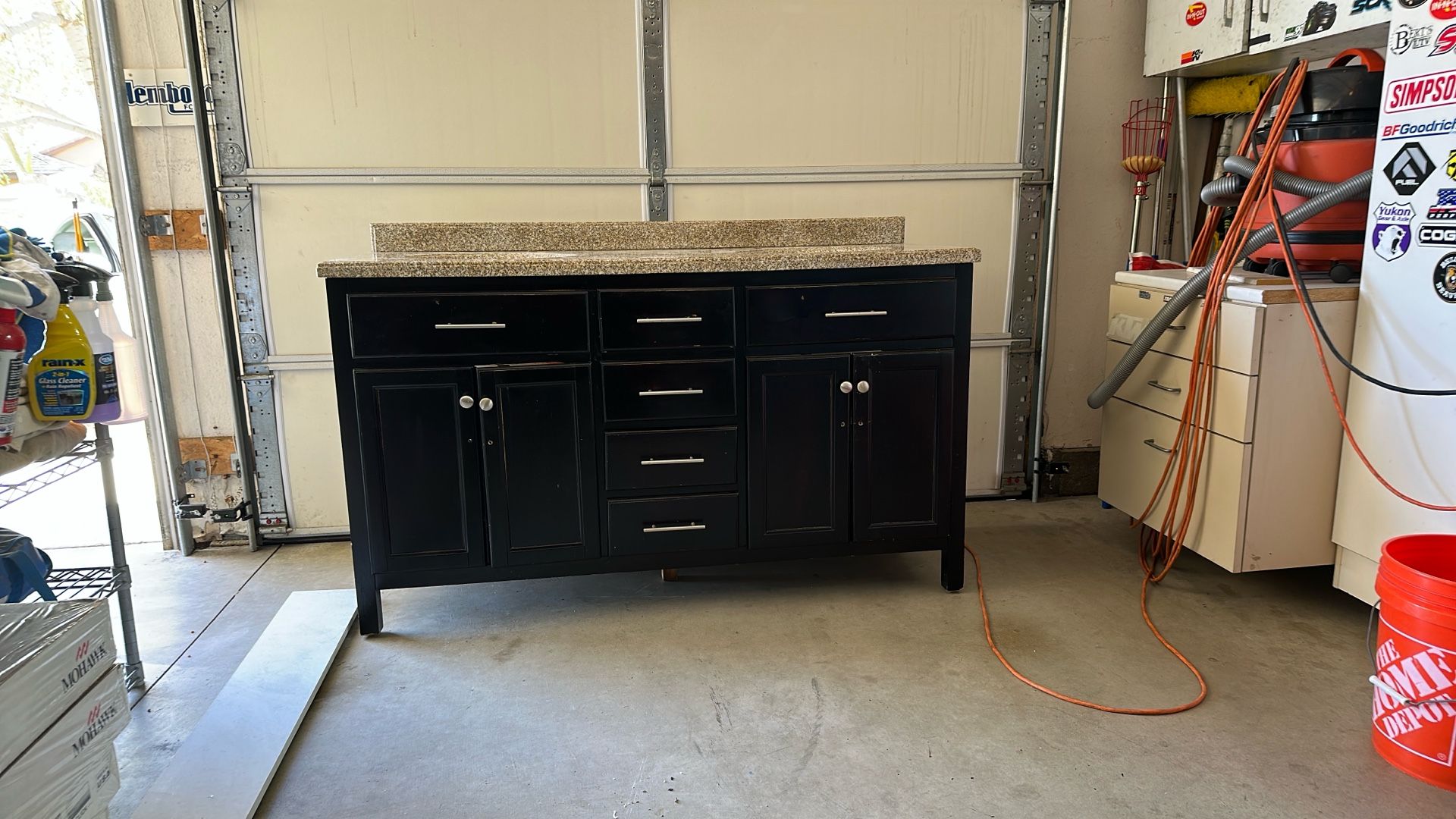 Dark wood vanity with Granite top