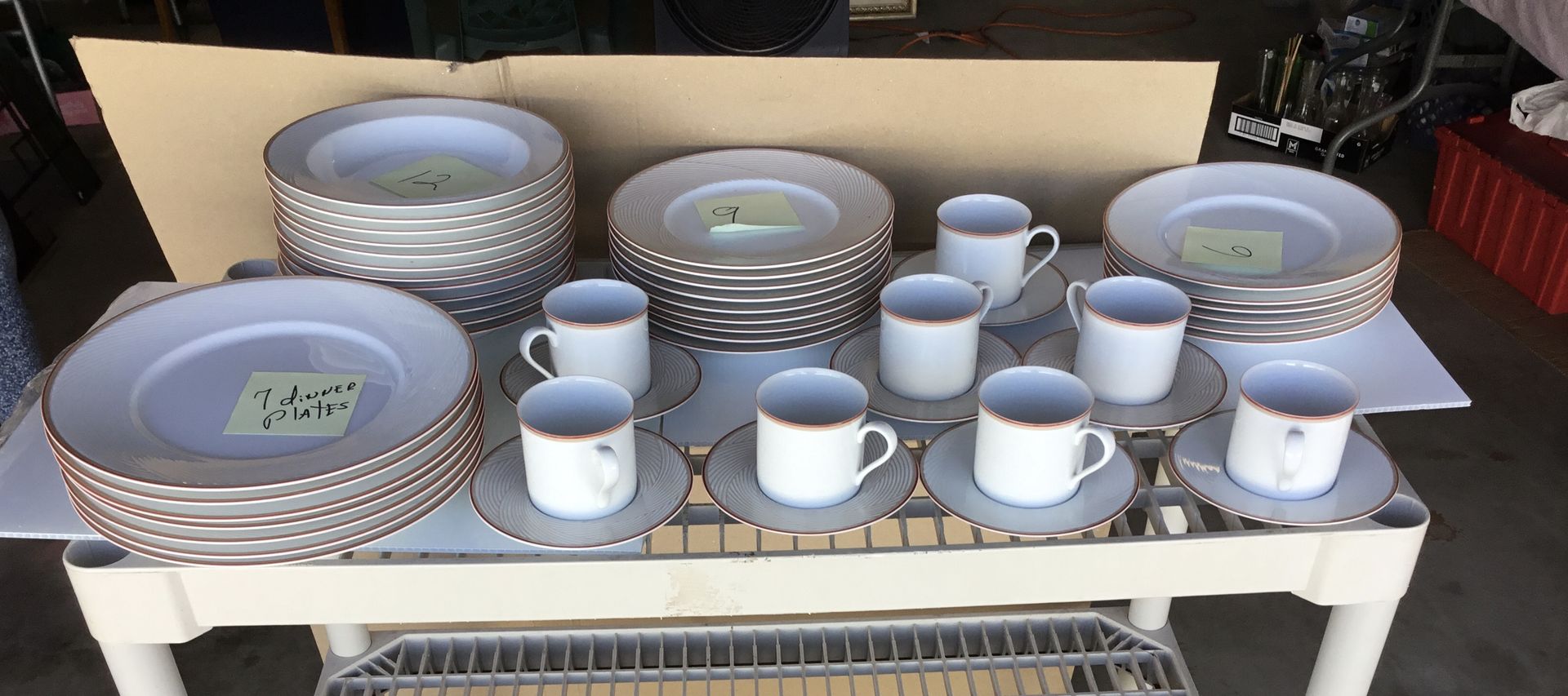 Dansk Tapestries collection, featuring the Damask pattern designed by Jack Lenor Larsen and crafted in Japan 7 dinner plates 12 salad 9 snack 6 snack (different design) 8 coffee cups with saucers