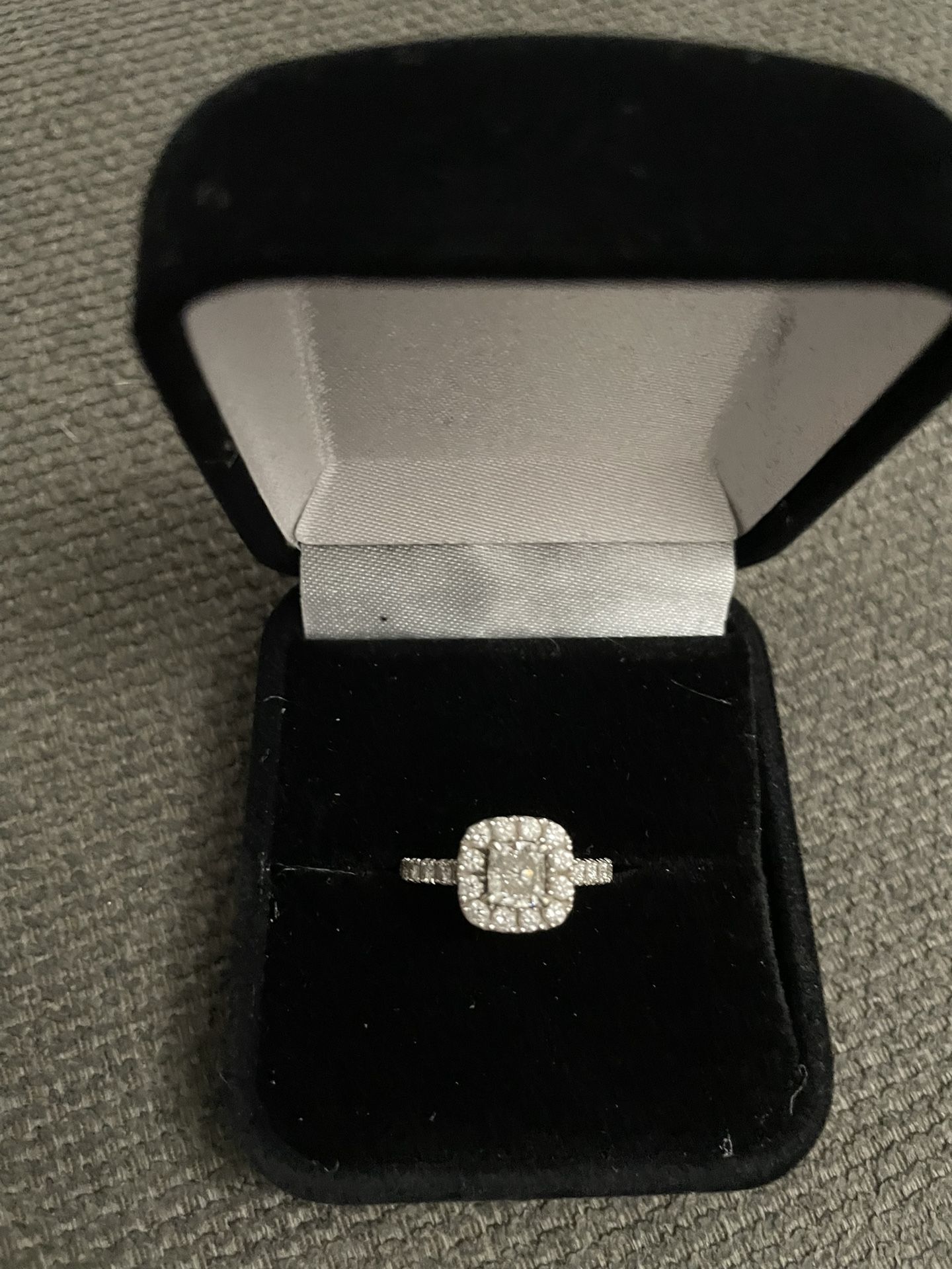 Diamond Engagement ring for sale. Ring is 3-3/4 size with ring spacers in. If spacers are removed it is a size 5. Ring box included. Asking $1000 OBO. Trying to pay medical bills.