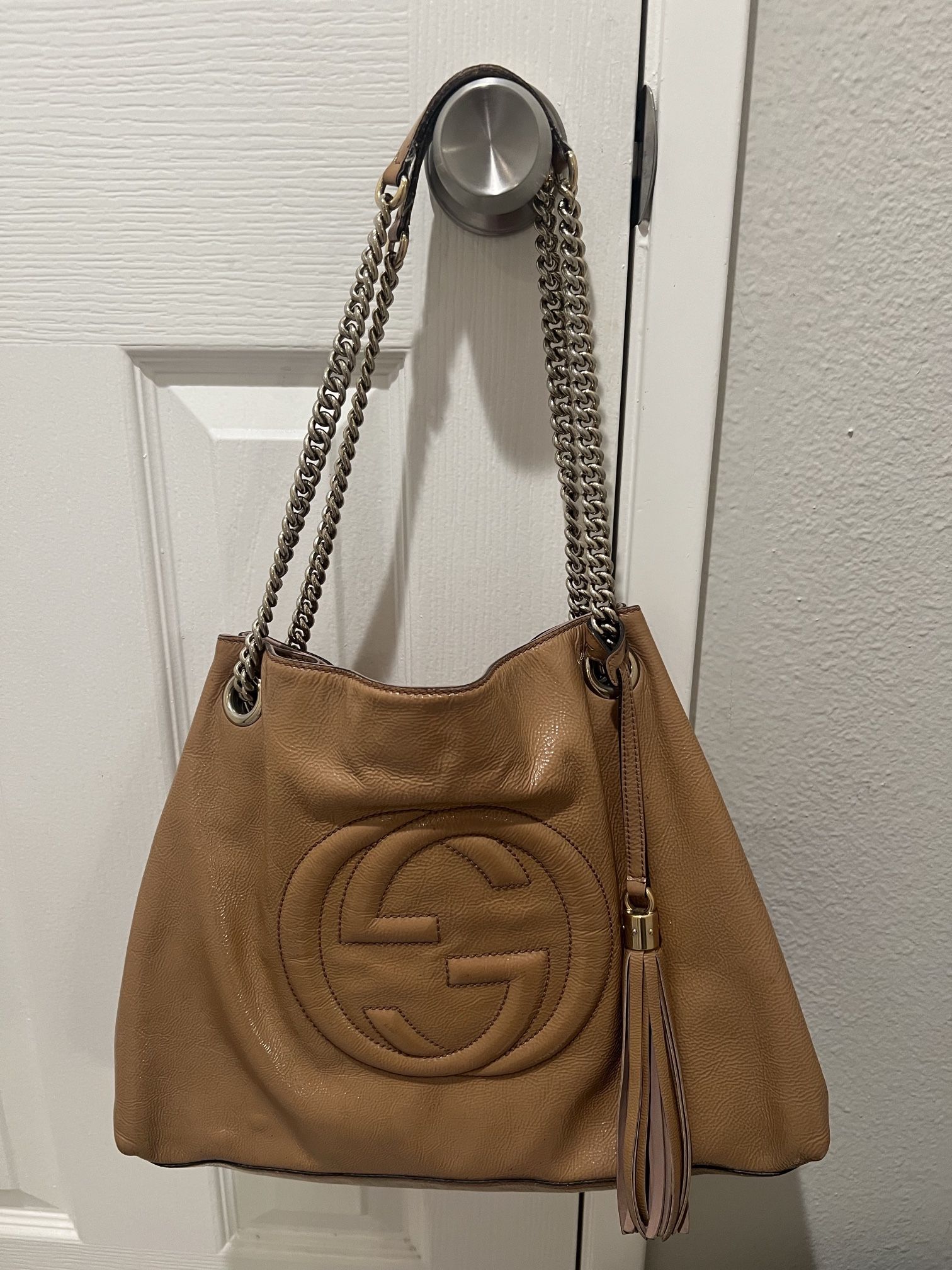 Gucci bag 100% authentic Shiny leather beige color