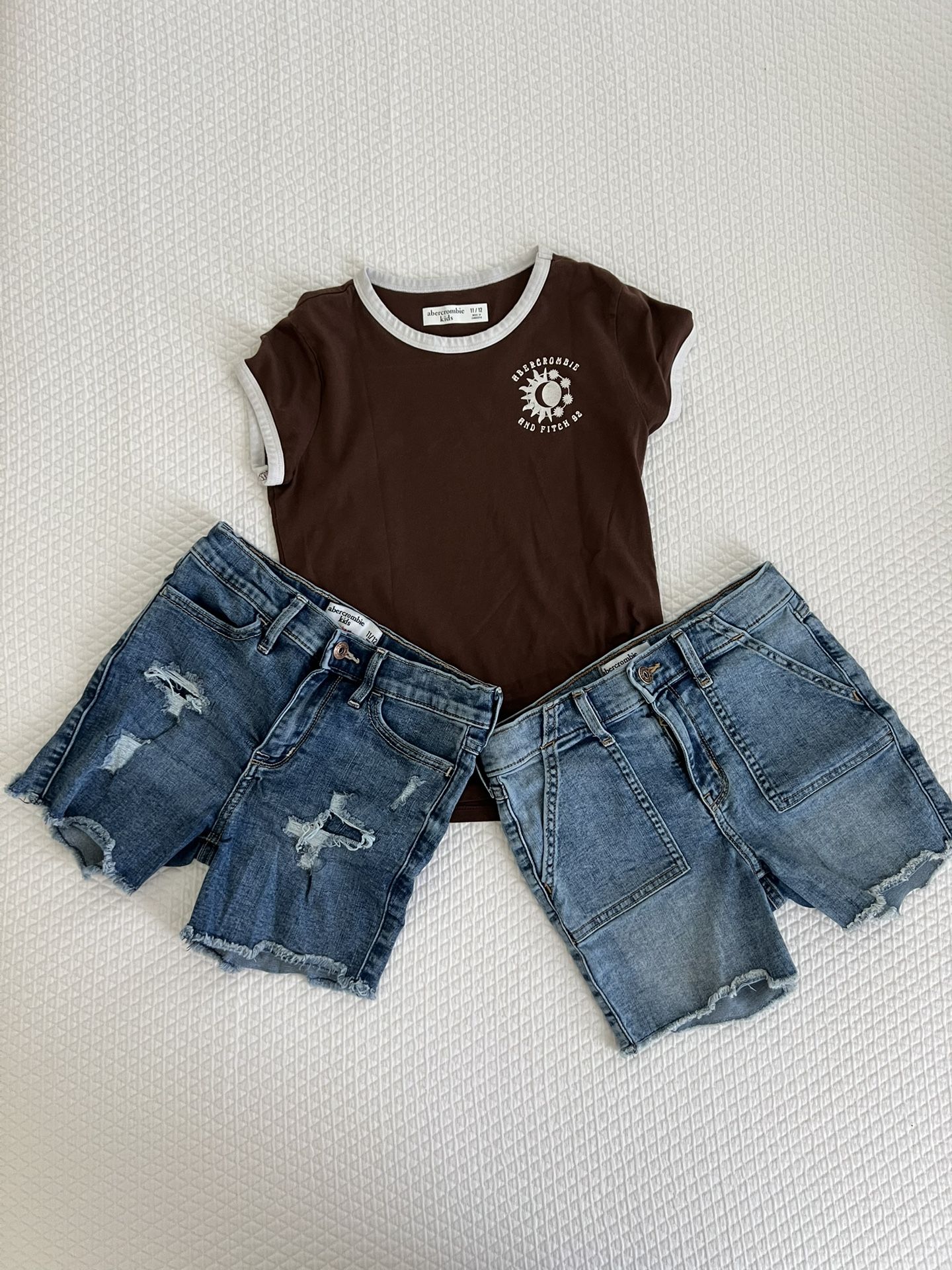 Price is for all items! Pair of high-rise bike shorts. Features classic button and zip closure with adjustable waist size 1/112. π item included brown Abercrombie kids T-shirt. Please SEE picture(s)for details. Items come from a clean pet and smoke free home. Cash ONLY. Pick up North Harlingen. Feel free to checkout my other listings. Serious inquiries, thank you!