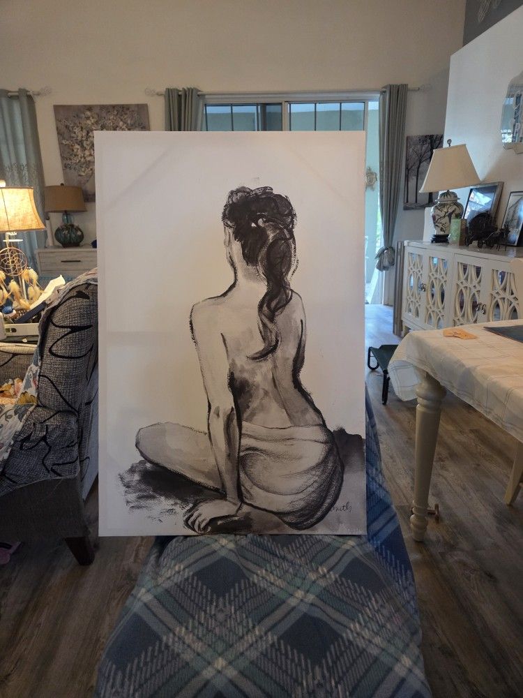 Woman On Canvas BIKE & White 36h24w LITE WEIGH Great In Master Bed Bath LITE WEIGHT Ask 55 Obo