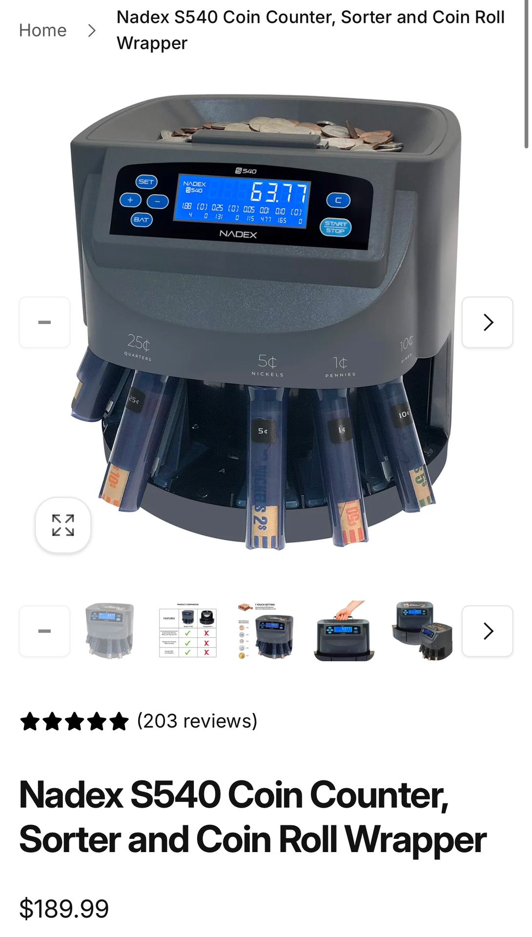 Nadex S540 Coin Counter, Sorter and Coin Roll Wrapper