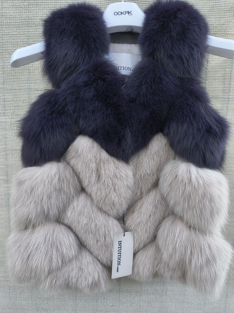 New, never worn, very warm and beautiful vest made of natural fur combined with leather. The color is light gray and eggplant. Original price $1,100+tax