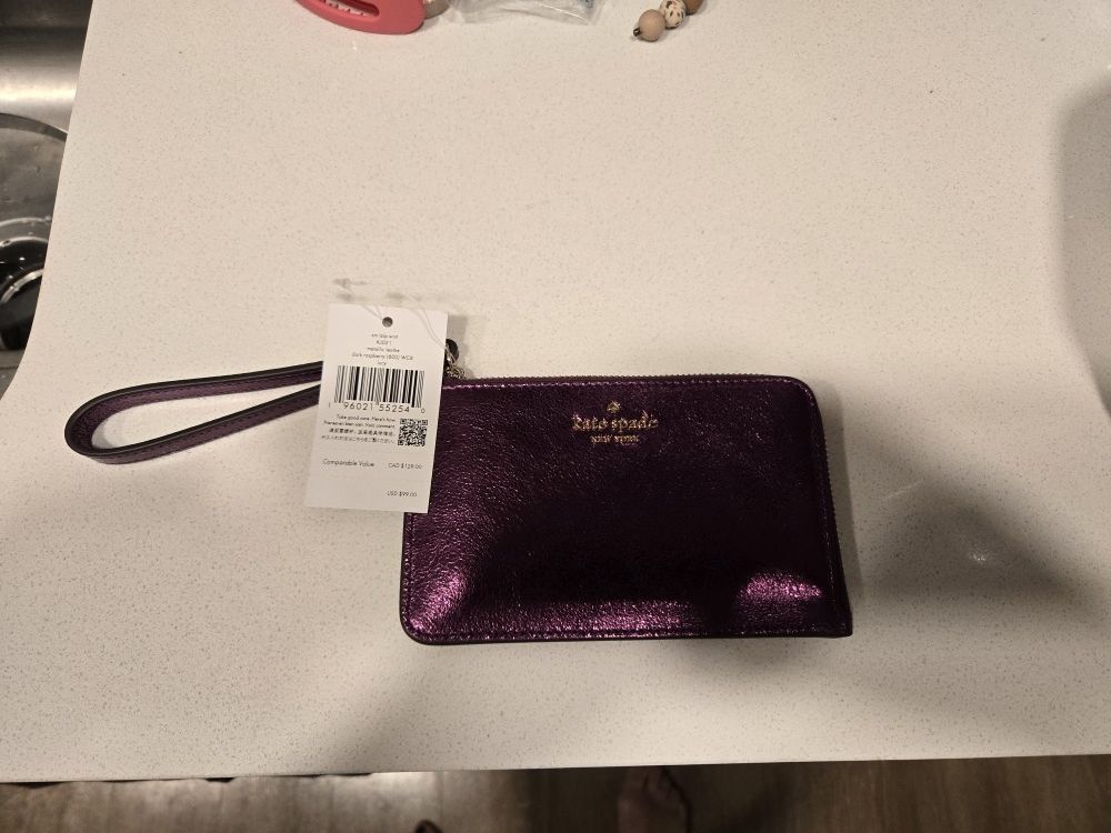 NWT Metallic Dark Raspberry Kate Spade Small Wristlet