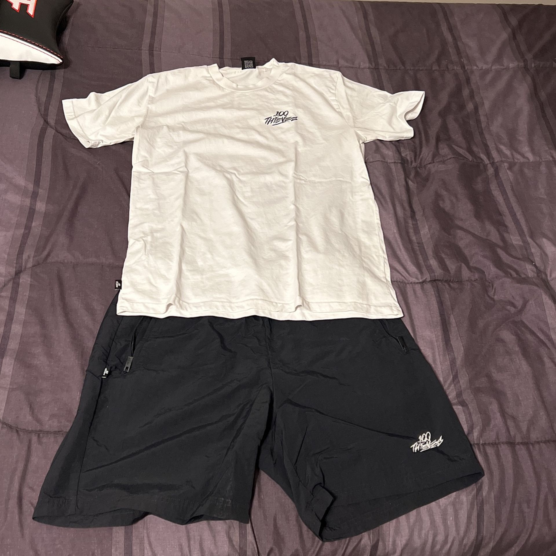 100 Thieves Foundations White Tee And Black Shorts SIZE MEDIUM