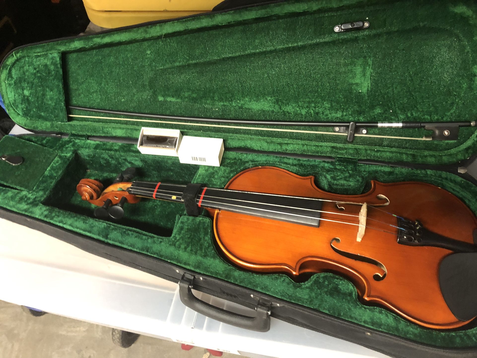 Violin With Bow And Case. Violin is in great condition but it’s not being used as often so it’s better off in the hands of someone will will play the instrument more frequently. MISSING THE “A” STRING