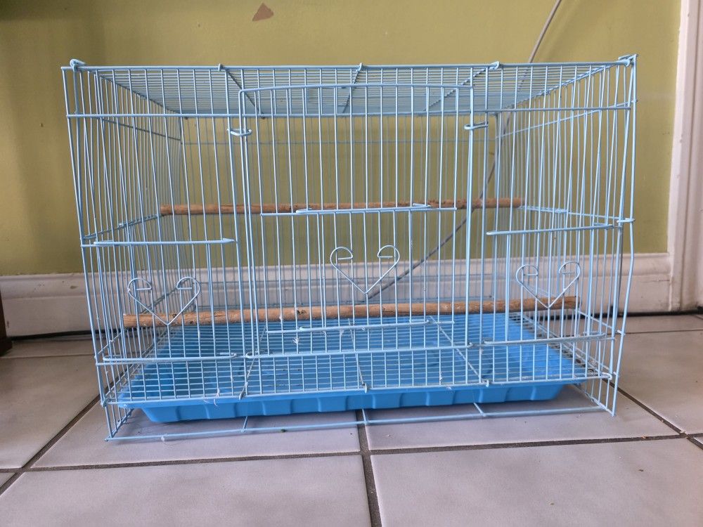 $35 Blue bird cage Comes with wooden poles (shown in picture) Measurements ↓ L×W×H 19.5×13.5×13.5