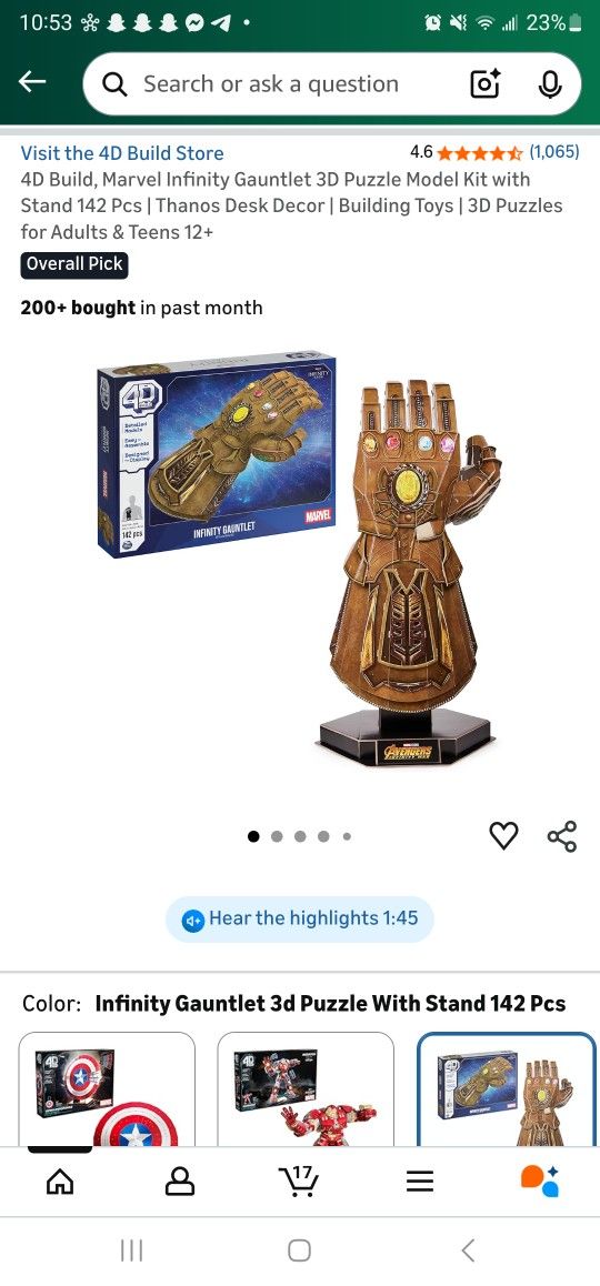 4D BUILD infinity Gauntlet. Puzzle 3d