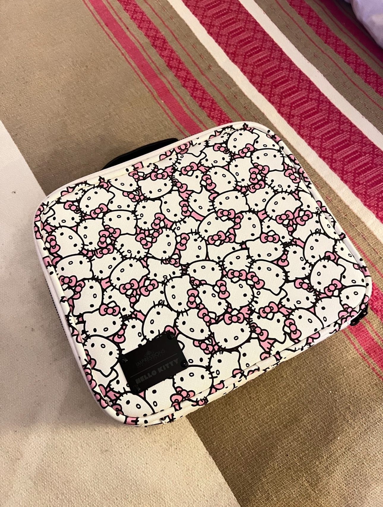 Hello Kitty make up bag, perfect for traveling. No stains or marks, zippers works perfectly. It holds your makeup brushes, etc., in place. Compartment sizes can be adjusted easily. NWOT