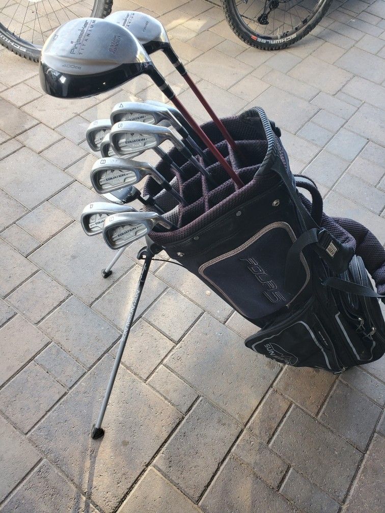 Pinseeker driver and 3 wood Tommy Armour GXT 52 Dunlop Equation Plus 4,5,6,7,8,9,P Putter Strata llus Comes with stand bag ready to go golfing