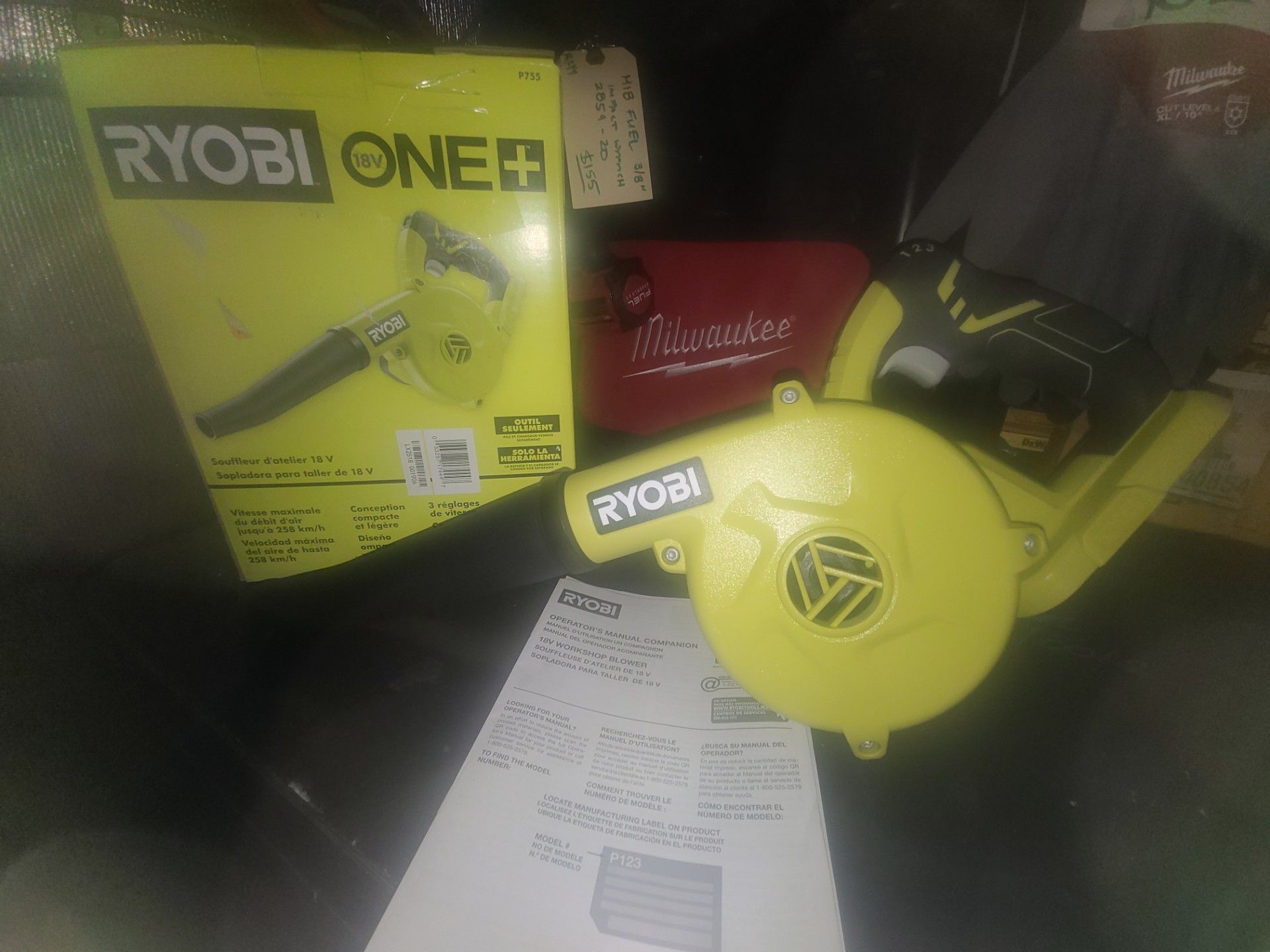 RYOBI ONE+ 18V Cordless Compact Workshop Blower (Tool Only). New condition. Model #P755 $45. Thanks.