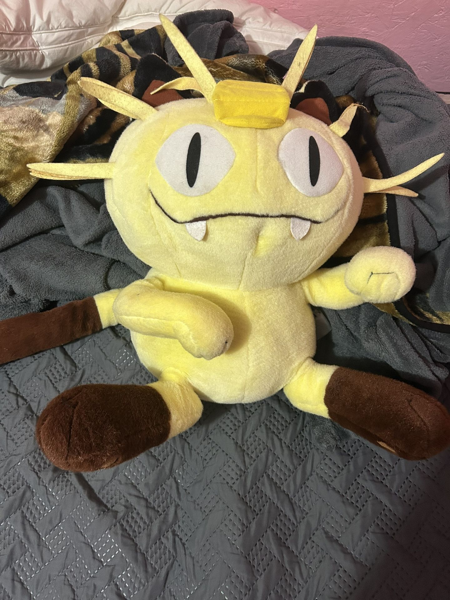 2001 Pokemon Meowth Jumbo Plush Stuffed Animal Hasbro Tomy