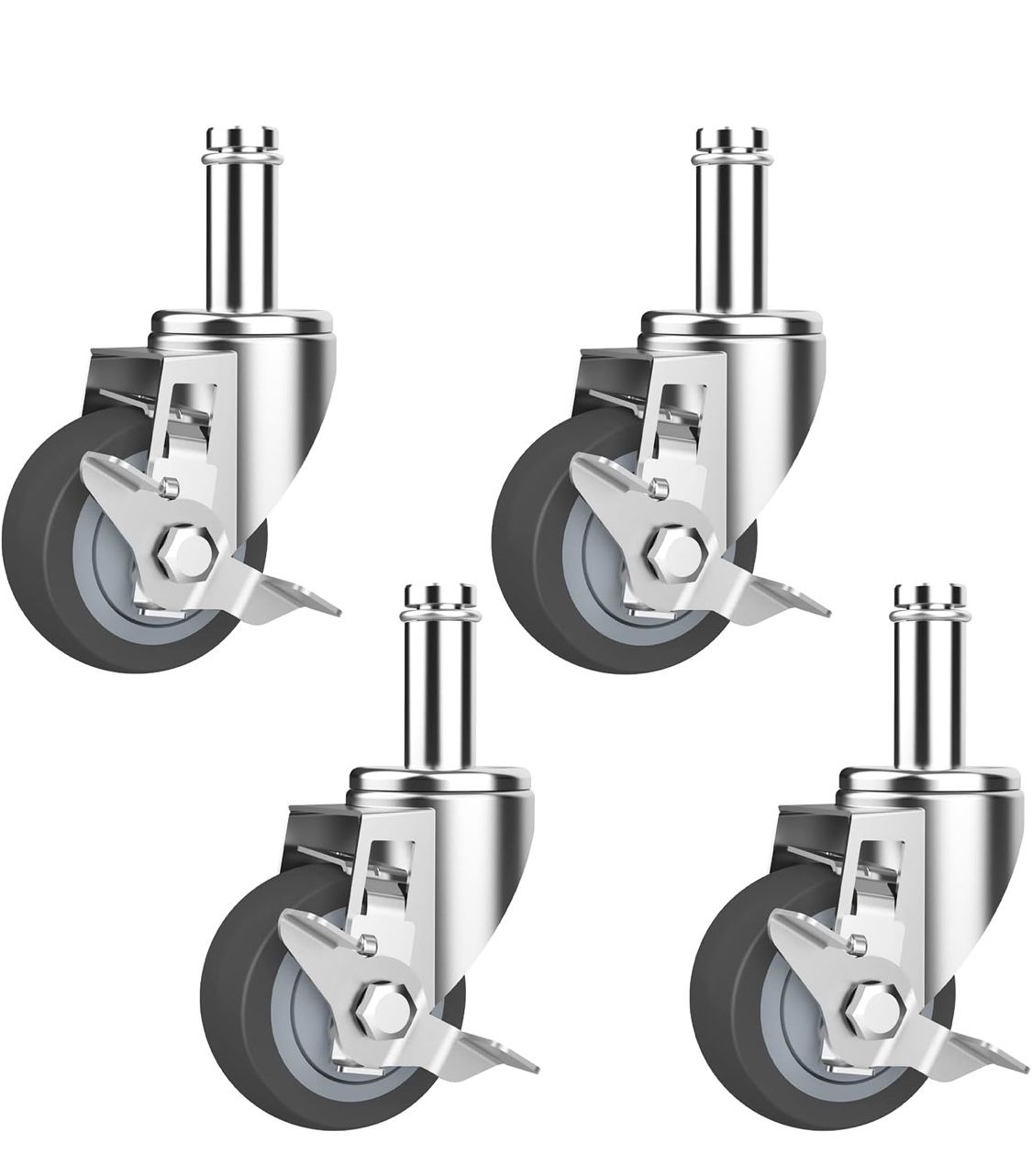 Inch Caster for Wire Shelving Racks with Brakes(Grip Ring Stem-Fit for 7/8” ID Tubing), Set of 4 Metro Shelving Replacement Wheels(.864" x 2-3/16")