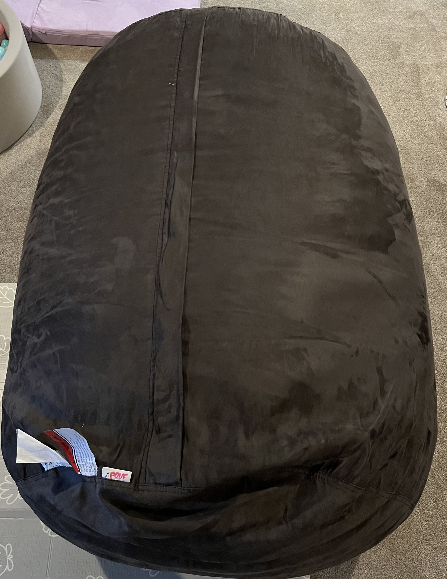 Used in very good condition. Beanbag rarely used Pick up only. Color: charcoal/ grey 6.5' Bean Bag Filled with Eco-friendly polyurethane foam Made from 100% polyester faux suede Removable Cover, machine wash
