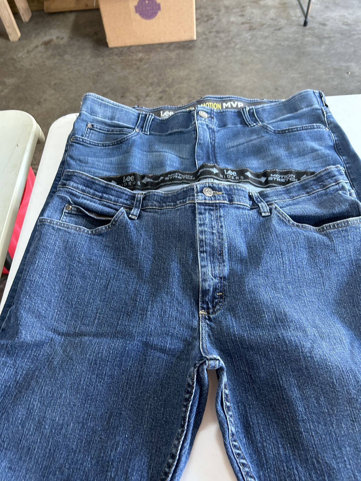 Two pair of men’s Levi’s just like brand new size 42/30 and 44/29 $15.00 a pair. A pair of Carhartt FR 40/30 new $15.00 …. One pair of Lee extreme motion MVP new 42/30 and one pair Lee motion stretch 40/29 new $10 each