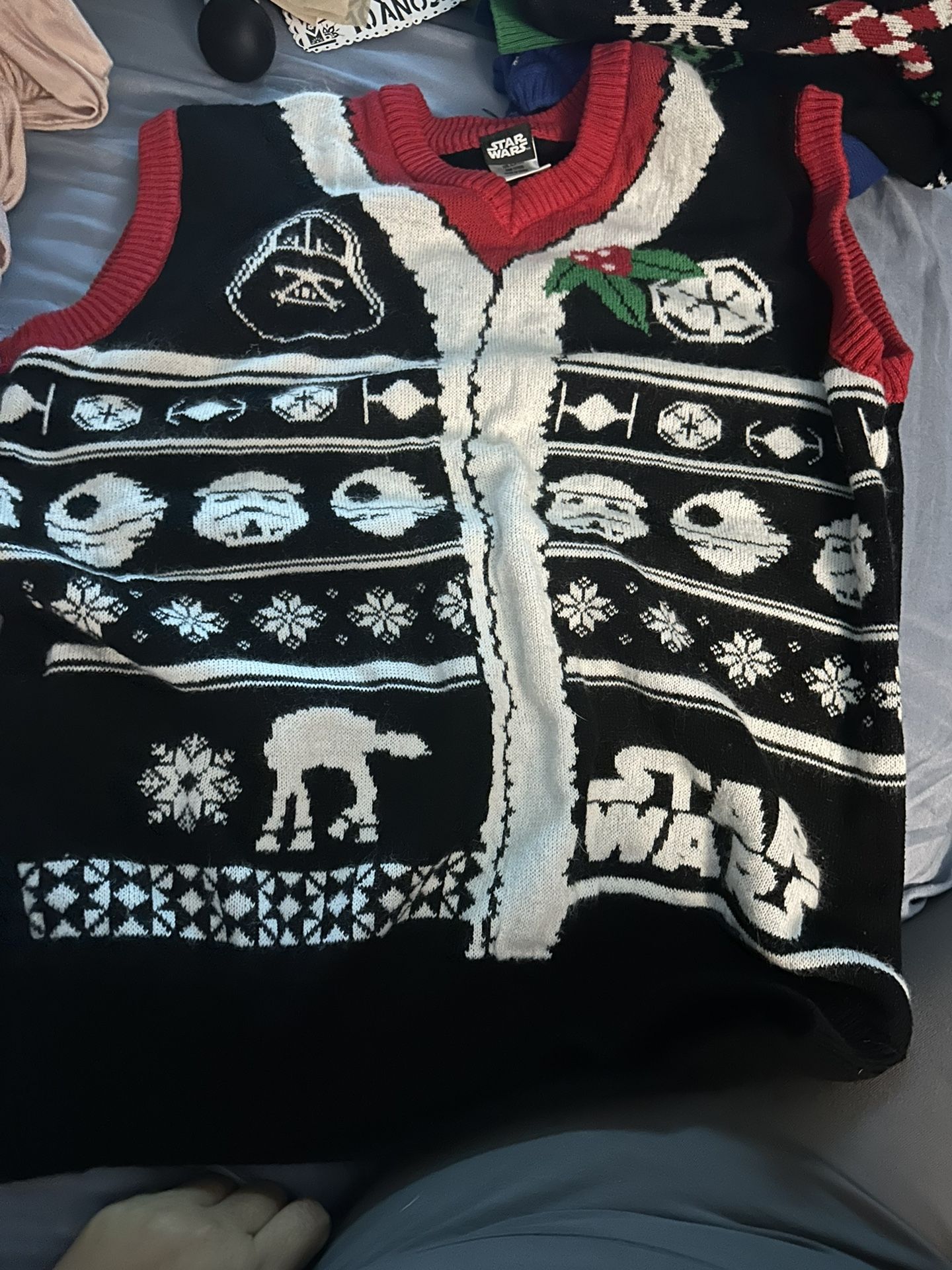 Six ugly Christmas sweaters one is a vest. All the sizes are in the pictures take all or each one $10