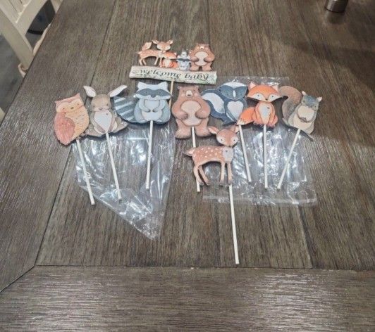 Woodland Animal Centerpiece Sticks and baby shower cake topper New