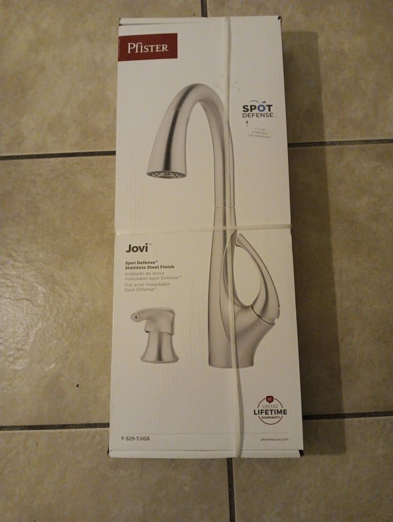 Brand New - Pfister Kitchen Faucet with pull out sprayer and soap dispenser. Limited lifetime warranty Model - F - 529 -7JIGS