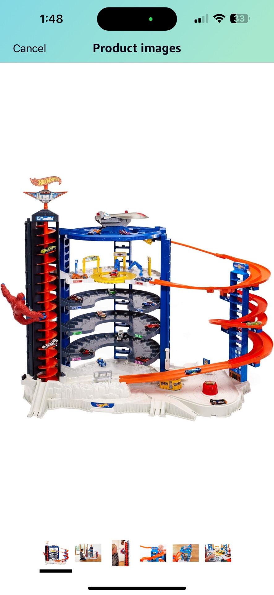 Hot Wheels Toy Car Track Set & 4 1:64 Scale Cars, Super Ultimate Garage, 3+ ft Tall with Motorized Gorilla & Storage for 140 Cars (Amazon Exclusive)