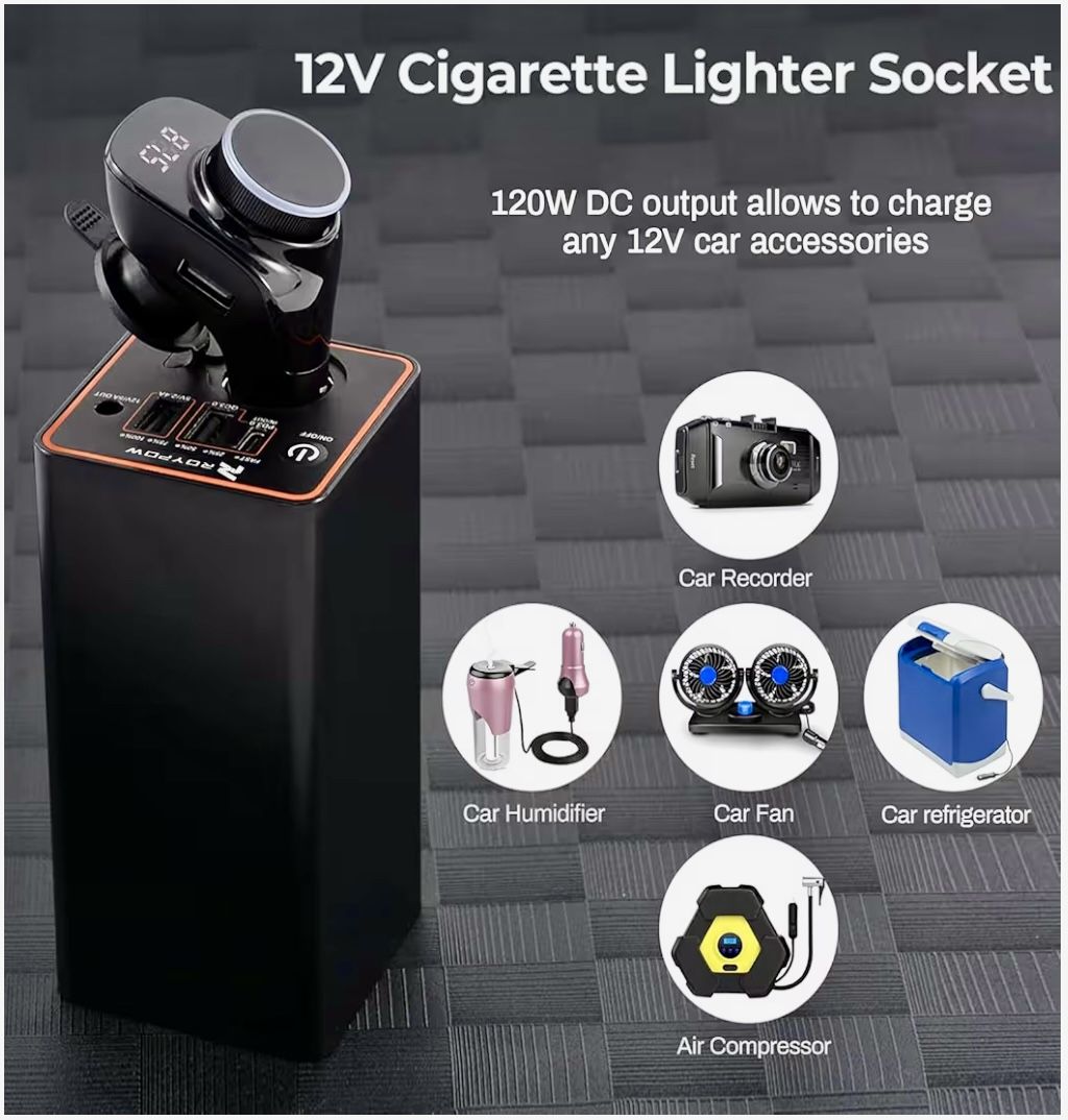 RoyPow 30W PD Portable Charger features exactly what you're looking for - 5 different charging ports that can power multiple devices simultaneously:The 5 Charging Ports: • 30W USB-C PD - Fast charges laptops, tablets, and phones • 18W USB-A QC 3.0 - Quick charge for smartphones and tablets • 12W USB-A - Standard charging for various devices • 12V DC Output - Powers CCTV cameras, routers, speakers • 12V/10A Cigarette Lighter Socket - Runs car accessories up to 120W With 86.58Wh capacity, it can charge multiple phones at once or power a laptop and phone together (though simultaneous laptop + phone charging isn't recommended for optimal performance). Customers frequently mention its versatility for powering dash cams, fans, and various electronics during travel or outdoor activities. Se Habla Español