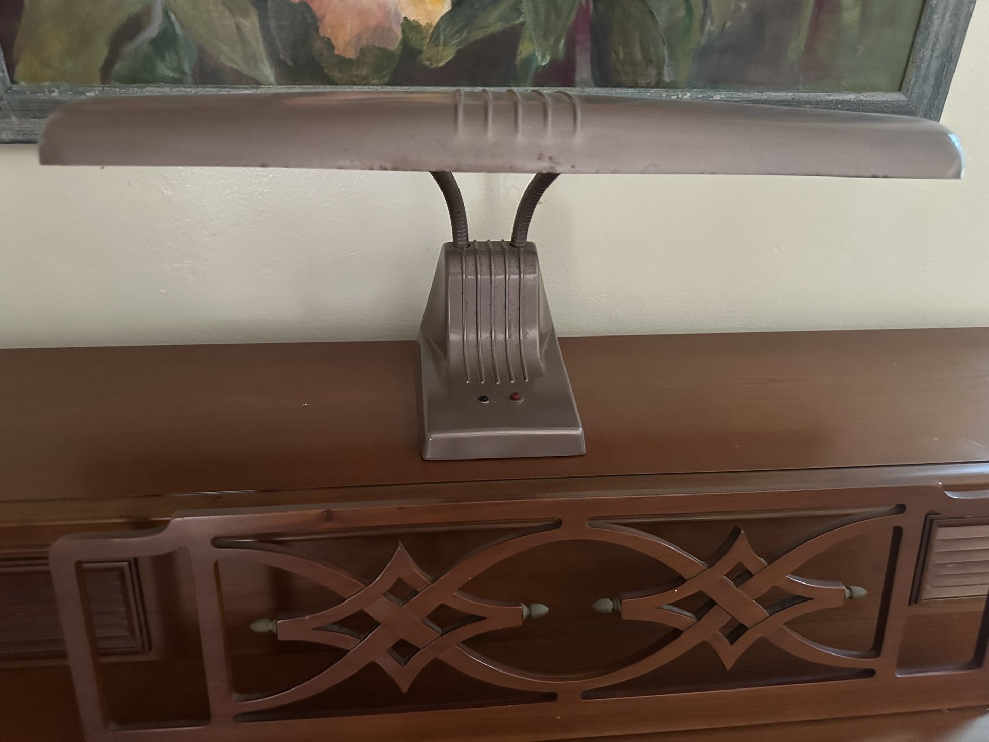 Sleek art deco vintage industrial Dazor Model 1000 Double Gooseneck Drafting Lamp fluorescent. 20.5” W x 8.25” D x 14” L also used for piano lamp