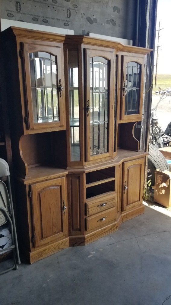 Wood hutch for free must pick up before Friday or it's going to goodwill. It is missing two drawers and mirror on inside broke during the move to storage. ITS FREE