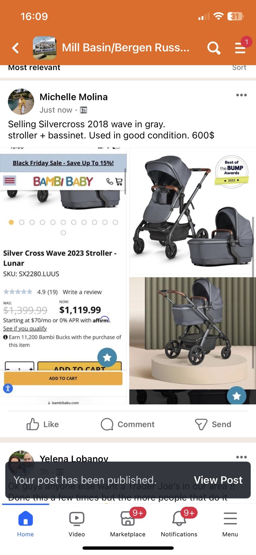 Silver Cross 2018 bassinet + stroller. Gray color. Used but in great condition. Will include a silver cross umbrella and cup holder accessory.
